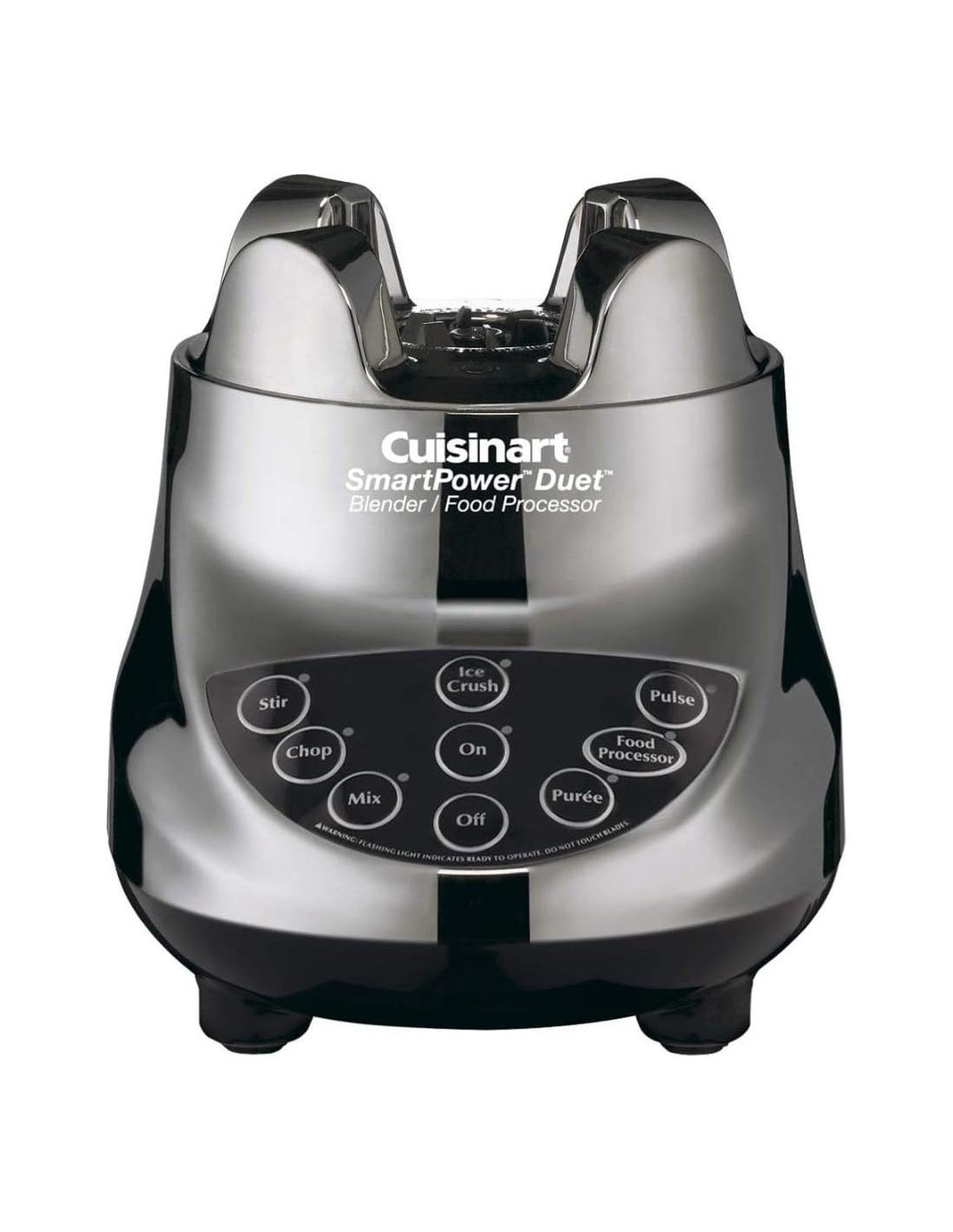 La nueva licuadora de 7 velocidades de Cuisinart es potente y también cuenta con un auténtico procesador de alimentos Cuisinart. Un motor de 500 vatios de alta resistencia pulsa, revuelve, mezcla, tritura, hace puré y hasta tritura hielo en tiempo récord. En modo procesador de alimentos, los usuarios pueden rebanar, rallar o procesar ingredientes directamente en un tazón de trabajo de 3 tazas. Es grande, es potente y es fácil: ¡las partes removibles son aptas para lavavajillas! Características: Motor de 500 vatios de plena potencia con protección contra sobrecargas|Carcasa de metal fundido|Jarra de licuadora de vidrio de 48 onzas (1,42 litros) con un conjunto de cuchillas de acero inoxidable ultra afiladas|Accesorio de procesador de alimentos de 3 tazas con tubo de alimentación y empujador, disco de rebanado/rallado y cuchilla de picado de acero inoxidable|Controles de panel táctil electrónico de 7 velocidades con indicadores LED|Tapa medidora de 2 onzas (59,15 ml) removible en la tapa de la jarra de licuadora|Libro de recetas|Garantía limitada de 3 años|Libre de BPA