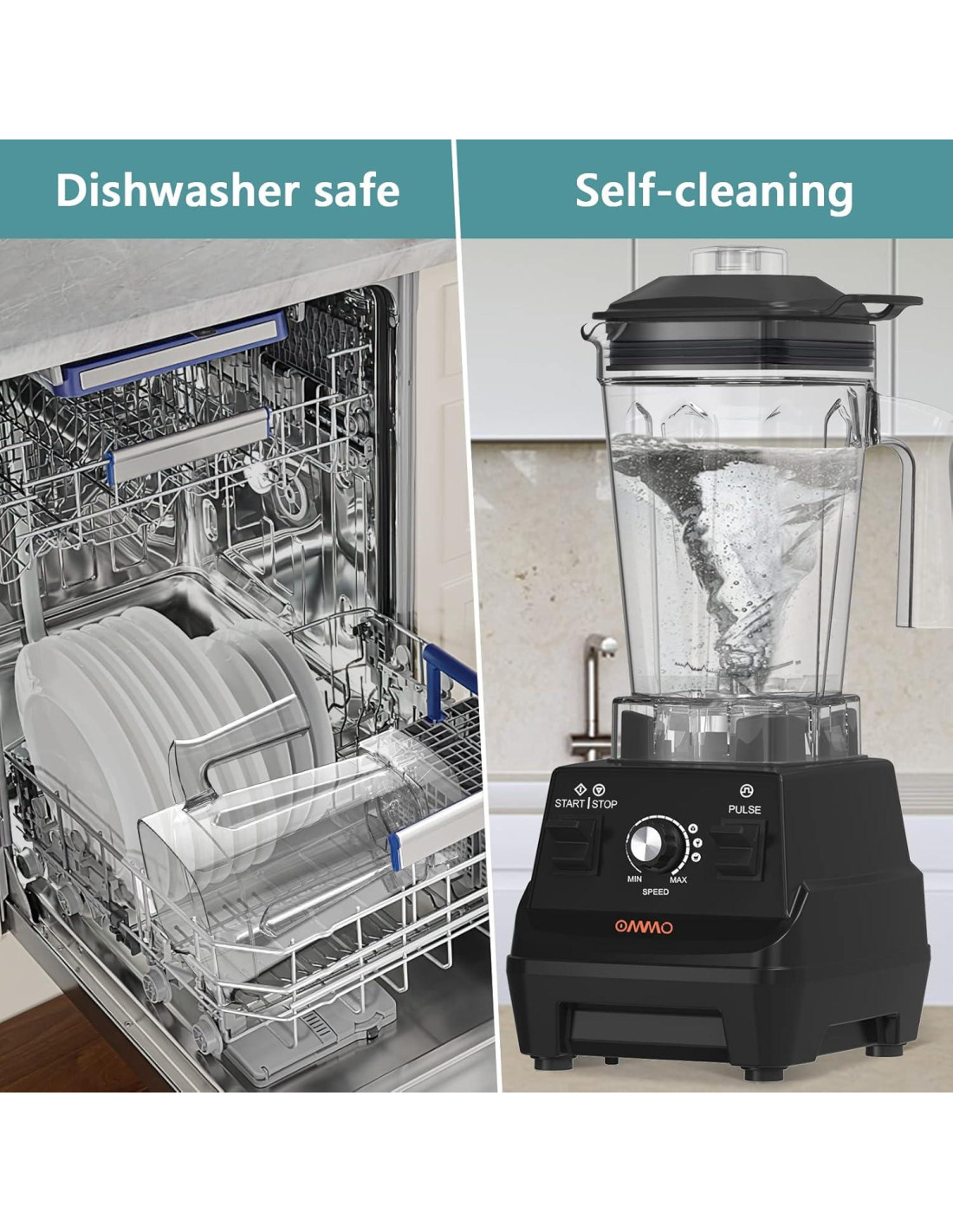 - Diseño Único de Tapa y Apta para Lavavajillas: La tapa de la Licuadora OMMO está diseñada con un mango que facilita abrirla sin derramar tu bebida. Además, es apta para lavavajillas, lo que hace que la limpieza sea muy fácil