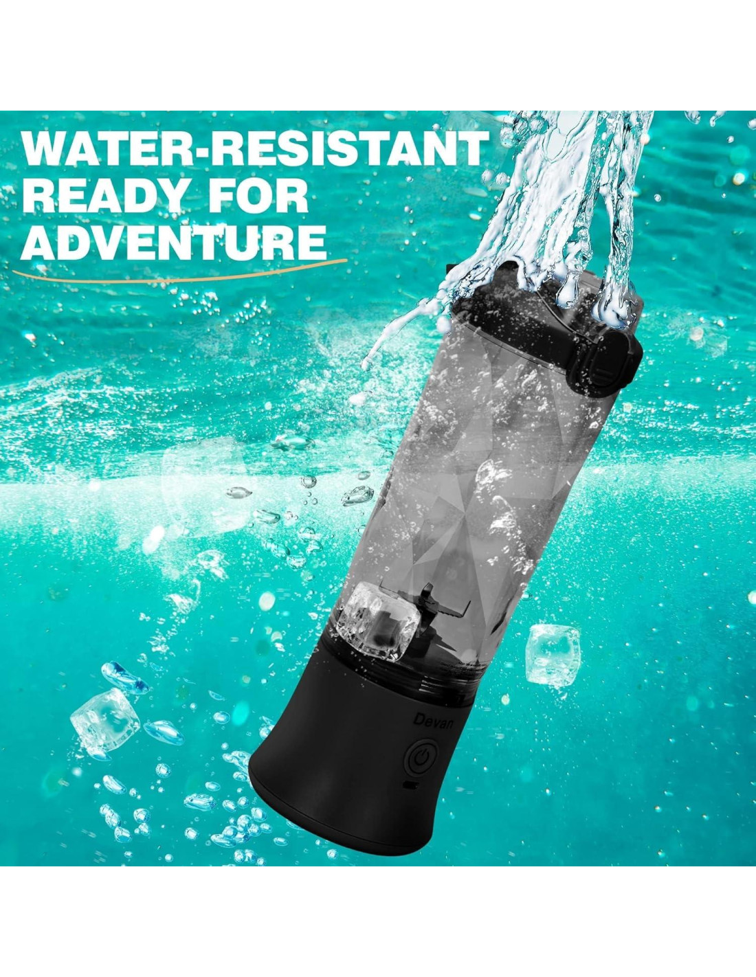 - Resistente al agua IPx67 y fácil limpieza. A la playa, a la piscina. La licuadora portátil Devan es impermeable IPx67, por lo que puedes llevar tu licuadora a cualquier parte. Lleva tu licuadora al fregadero o a la piscina sin preocuparte por derrames o incluso por la inmersión en agua. Puede sumergirse en agua hasta 10 minutos.