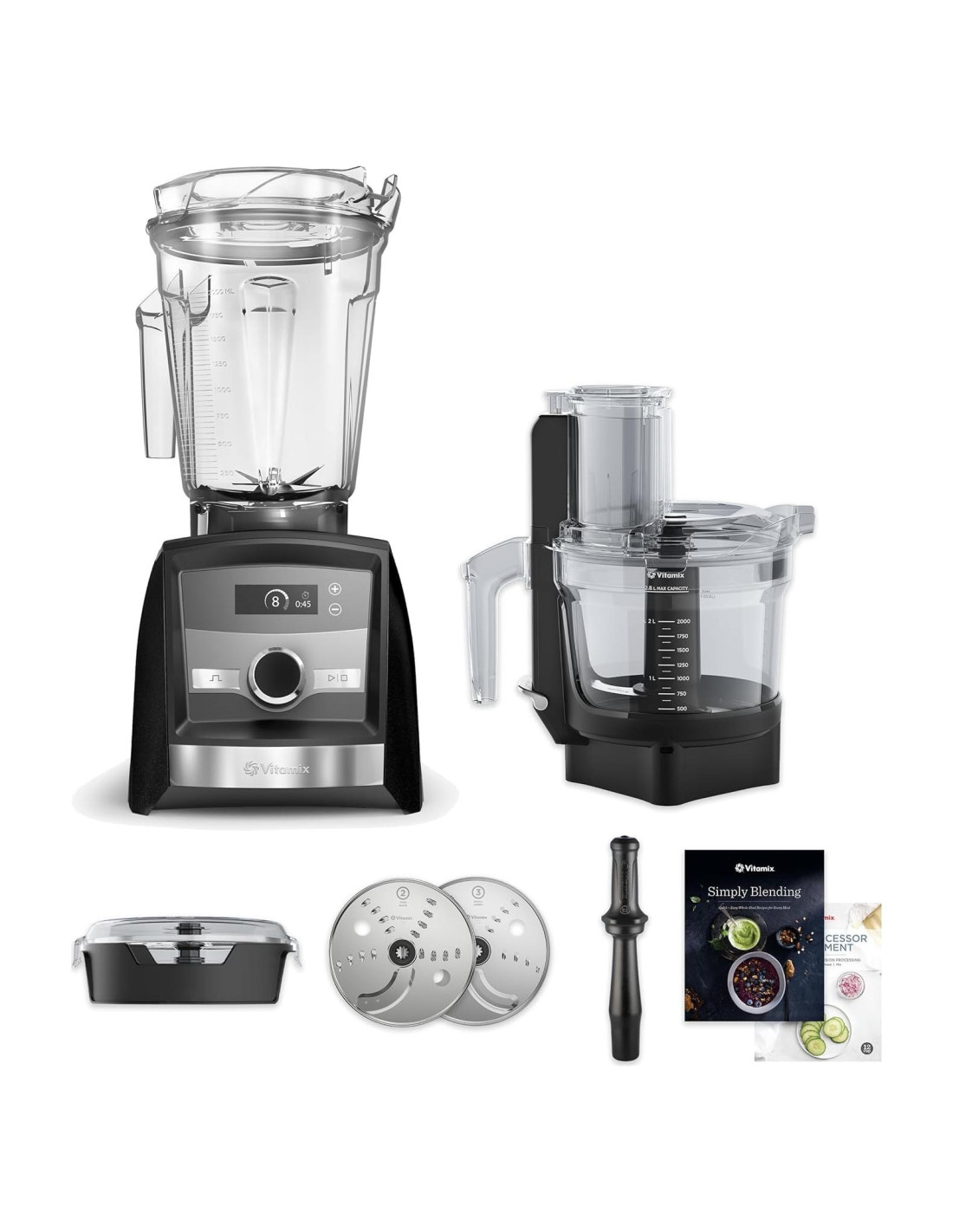 - Qué incluye la caja: Base del motor A3300, Recipiente de perfil bajo de 1.89 litros con DETECCIÓN AUTOMÁTICA, Libro de recetas Simply Blending, Tamper de perfil bajo, Tazón de trabajo de 12 tazas del procesador de alimentos con base de DETECCIÓN AUTOMÁTICA, 2 empujadores de alimentos, 2 discos reversibles de rebanado/rallado, 1 cuchilla multiuso, caja de almacenamiento de discos, tapa del tazón de trabajo, folleto de recetas del procesador de alimentos.