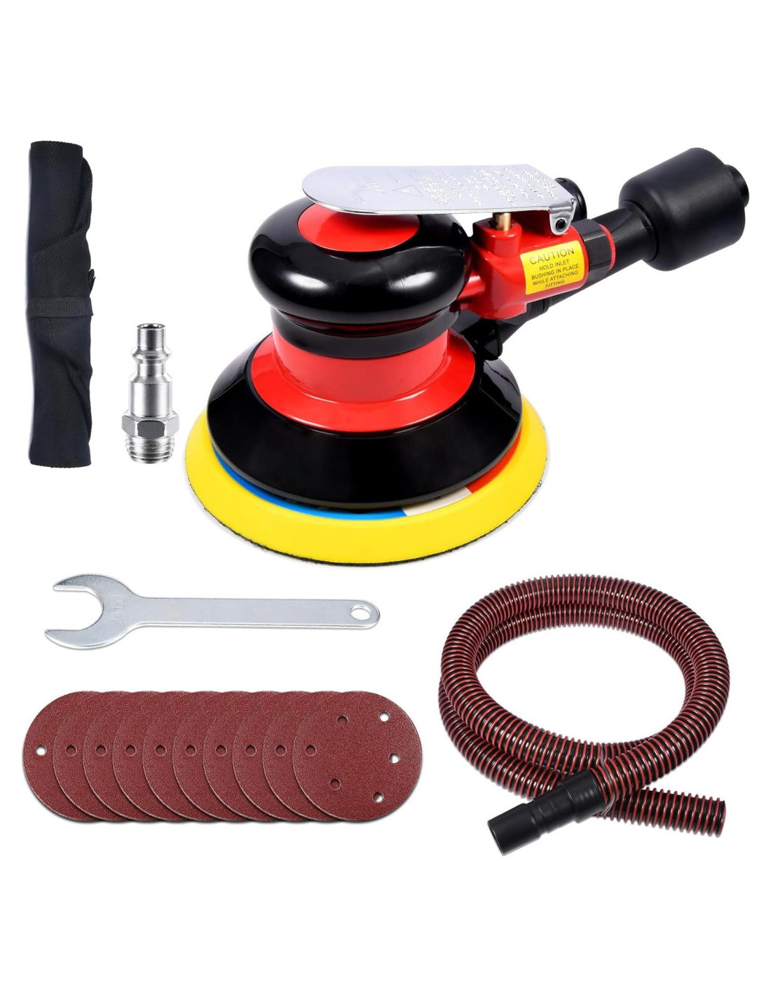 - COMPONENTES: La caja ecológica incluye 1 lijadora de aire, placa de respaldo de 5 pulgadas (12.7cm), 10 hojas de papel de lija, 1 bolsa de polvo, 1 manguera de succión larga y otros accesorios para satisfacer la mayoría de los requisitos y condiciones de pulido normales