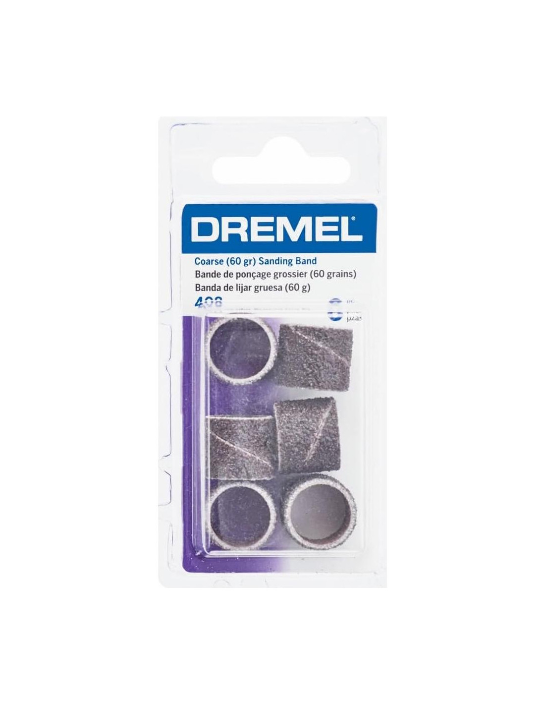Descripción del Producto Aprovecha al máximo tus herramientas rotativas Dremel utilizando nuestra línea innovadora y extensa de accesorios y acoples rotativos. Cualquiera que sea tu proyecto, tenemos la solución perfecta para ti. Los accesorios Dremel se ajustan dentro de tu herramienta rotativa para extender su versatilidad. Ya sea que busques tallar, grabar, cortar, lijar o moler, hay un accesorio Dremel para realizar el trabajo con precisión milimétrica. Por eso, nuestros accesorios Dremel diseñados específicamente te permiten llevar tu proyecto hasta el último detalle. Los accesorios Dremel también están codificados por colores en categorías de uso para facilitarte la selección del accesorio adecuado para tu proyecto. Convierte tu herramienta rotativa Dremel en una máquina de lijado versátil con las bandas de lijado de 408 de 1/2 Pulgada (12.7 mm) de grano 60. Las bandas de lijado se pueden usar para eliminar acabados, quitar óxido de superficies metálicas, o dar forma y suavizar madera, goma, fibra de vidrio, metal y otros materiales blandos. La 408 cuenta con un abrasivo grueso de grano 60 que elimina eficientemente una capa de escombros o acabado del material. Las bandas reemplazables se pueden usar con el mandril de tambor de lijado de 407 de 1/2 Pulgada o combinarlas con el EZ407SA Dremel EZ Drum que hace que los cambios de accesorios sean 5 veces más rápidos que usar un mandril de tambor estándar. Compatible con todas las herramientas rotativas Dremel con y sin cable. No hay necesidad de buscar el collet adecuado, todos los accesorios rotativos Dremel cuentan con un vástago estándar de 1/8". Amazon.com La Banda de Lijado de 1/2 Pulgada Dremel es ideal para dar forma y suavizar madera y fibra de vidrio, así como para eliminar óxido de superficies metálicas y dar forma a superficies de goma. Esta banda de lijado cilíndrica está cubierta con un abrasivo de óxido de aluminio de grano 60 grueso. Esta banda de lijado morada es fácilmente reemplazable y viene en un paquete de seis.