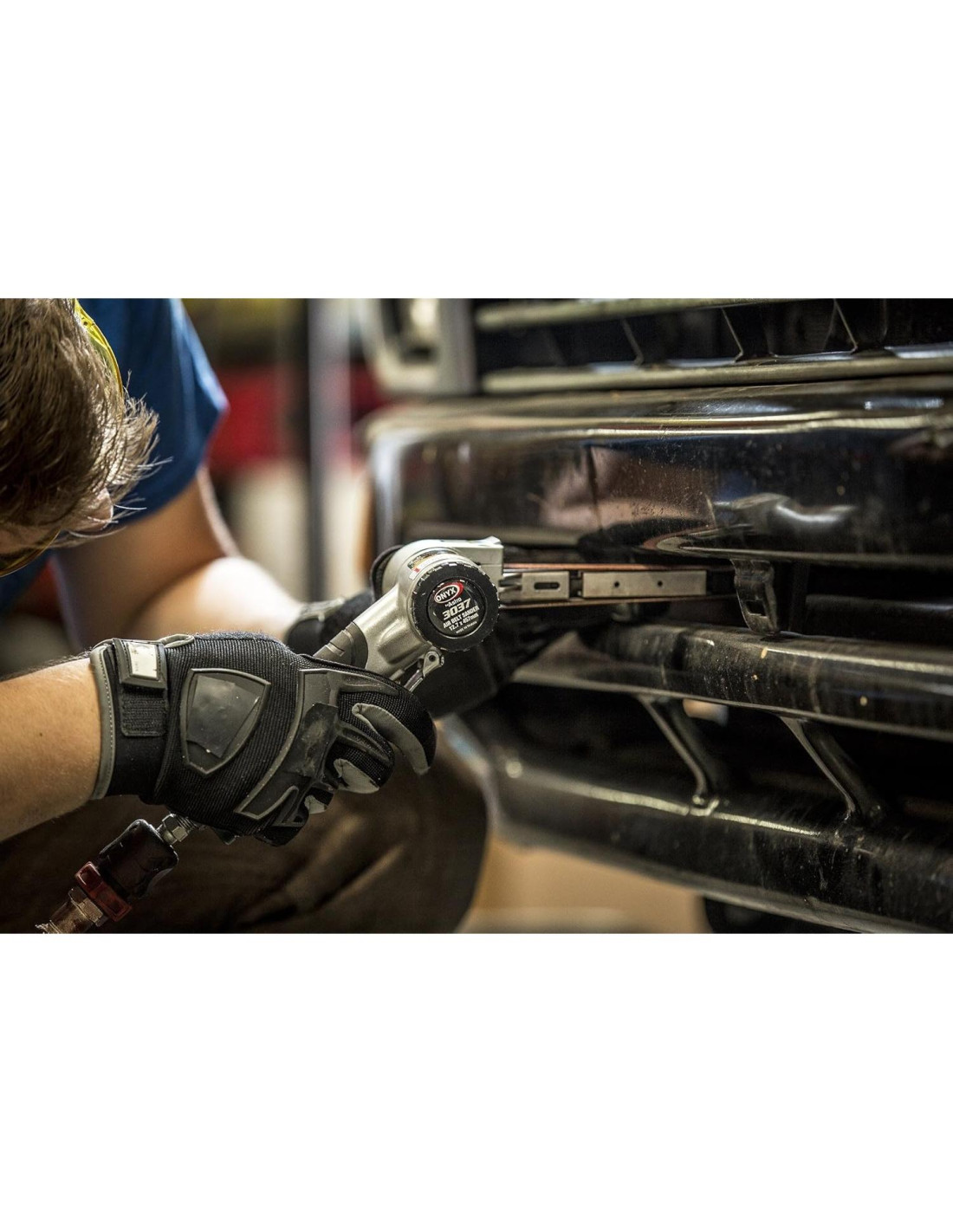 La Astro Pneumatic 3037 Lijadora de Banda de Aire de 1/2" x 18" está construida con un espacio de polea aumentado para las nuevas correas más gruesas. Esta herramienta incluye una palanca de tensión de correa simple y una protección para proteger tanto al operador como a la herramienta. También hay un mango antideslizante para la comodidad del usuario y control de velocidad variable para todas las aplicaciones. ESPECIFICACIONES: Velocidad Libre: 16,000rpm Tamaño de la Correa: 1/2" x 18" Consumo Promedio de Aire: 4cfm Longitud Total: 15.15" (365mm) Peso Neto: 2.2lbs (1kg) Entrada de Aire: 1/4" Presión de Aire: 90psi