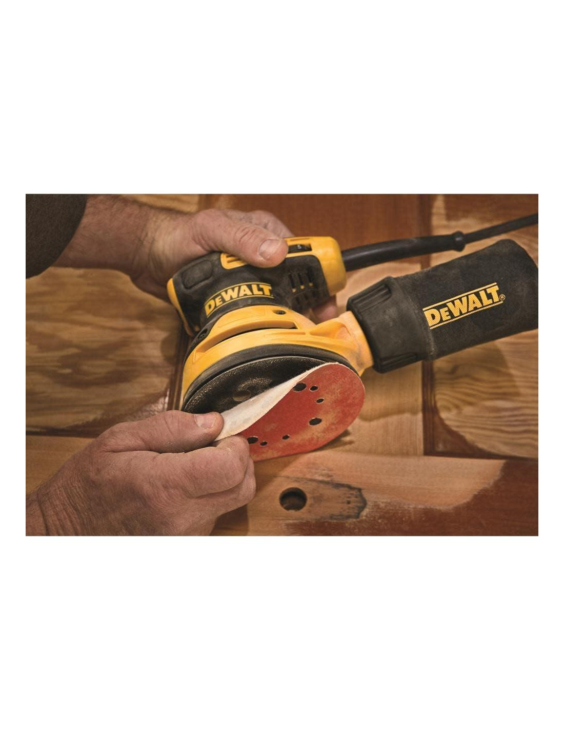 La DWE6423 Kit de Lijadora Orbital Aleatoria de 5 pulgadas y Velocidad Variable con almohadilla de gancho y bucle tiene un motor de 3 amperios que entrega entre 8,000 y 12,000 OPM. El contrapeso separado reduce la vibración y junto con el agarre de goma proporciona un lijado cómodo. Un diseño más corto permite a los usuarios acercarse más a la superficie de trabajo y la bolsa de polvo con bloqueo de una mano se adhiere de forma segura a la lijadora eléctrica para ayudar en la recolección de polvo o el usuario puede conectar la lijadora directamente a los recolectores de polvo DWV010 o DWV012.