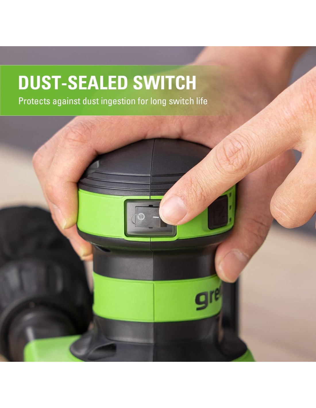 - Disco y Papel de Lijado Incluidos Viene con disco de lijado de gancho y bucle de grano 80, almohadilla de lijado de 5" y bolsa de recolección de polvo removible.