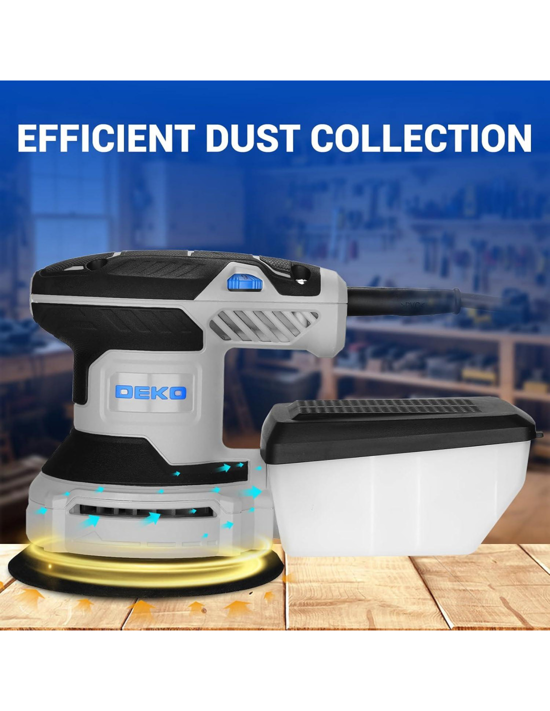 - POTENTE RENDIMIENTO DEKOPRO 2.5A Lijadora Orbital está ensamblada con un potente motor DEKO que puede alcanzar velocidades de hasta 14,000 RPM, lo que le permite proporcionar un rendimiento suave en una variedad de aplicaciones de lijado.