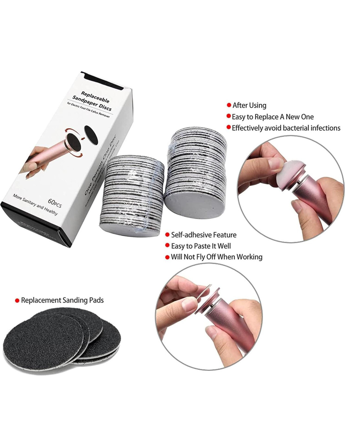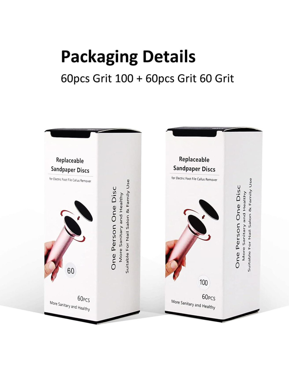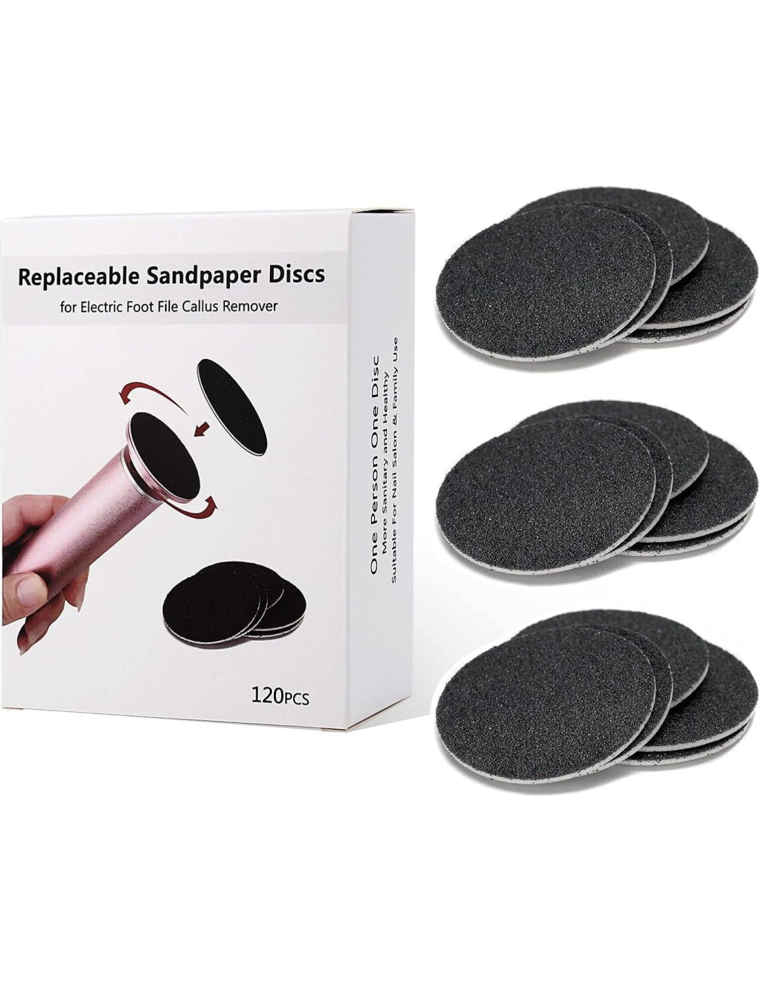 - El paquete incluye: 60PCS discos de lija de repuesto (Grano 60 Súper Grueso), 60PCS discos de lija de repuesto (Grano 100 Suave). El disco de lija para pies tiene un fuerte respaldo de espuma para una excelente adhesión.