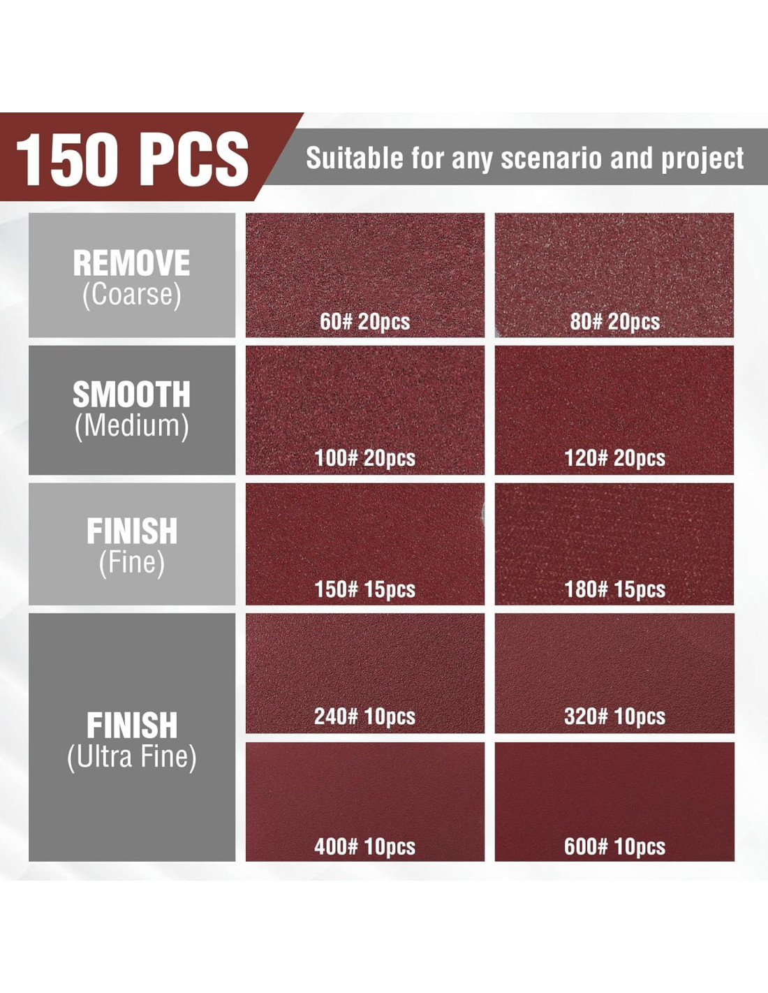 - Construcción de alta calidad: Nuestras almohadillas de lijado están hechas de óxido de aluminio abrasivo de alta calidad, que es duradero y anti-obstrucción. El grano de óxido de aluminio proporciona un corte rápido y un acabado suave a tu proyecto
