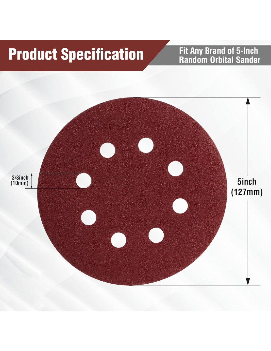 - Compatibilidad universal: Nuestros discos de lijado de 5 pulgadas (125 mm) son compatibles con lijadoras orbitales universales, como BLACK+DECKER, DEWALT, Bosch, Makita, PORTER-CABLE, etc.