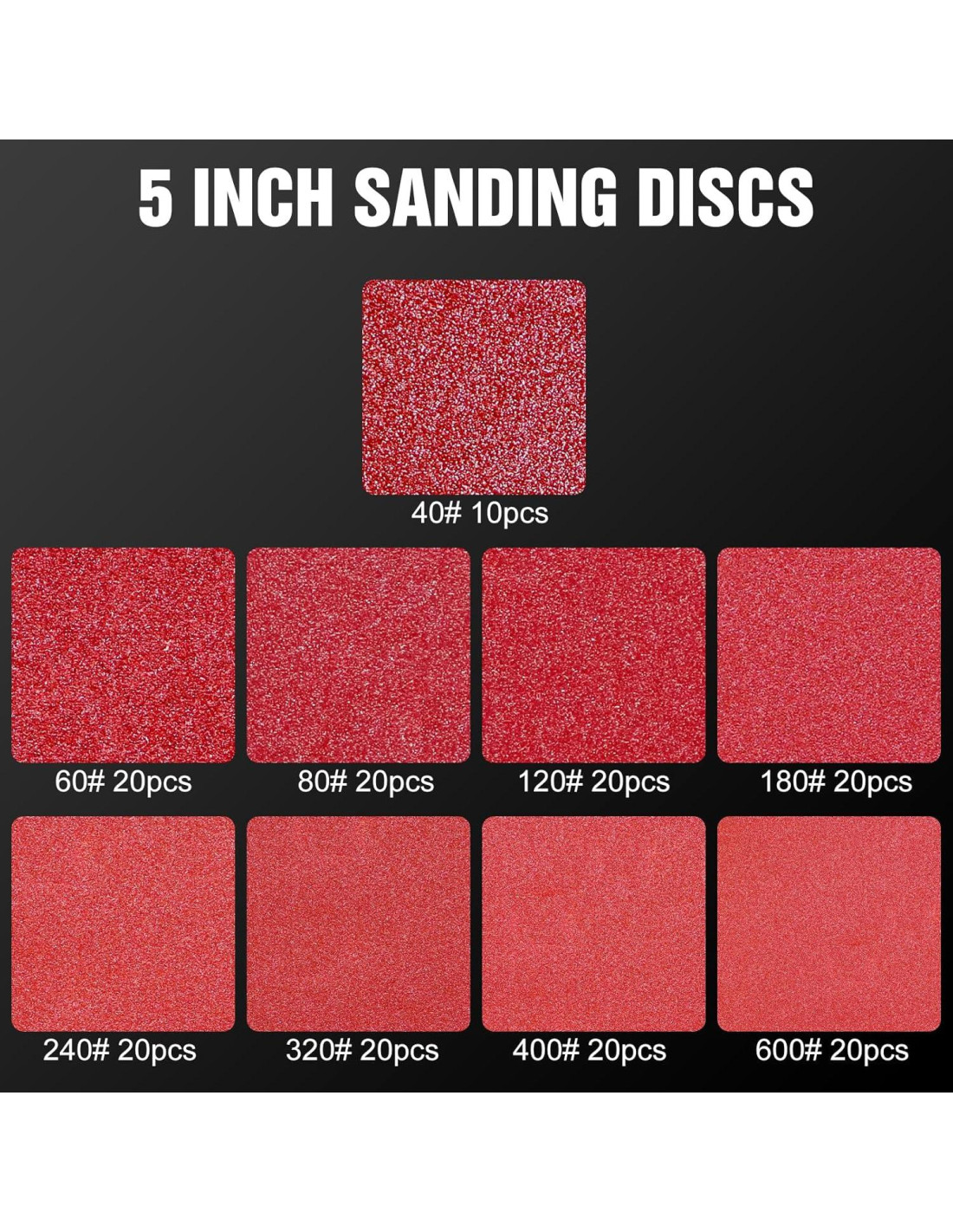 - Juego de papel de lija de 5 pulgadas que incluye 170 piezas de grano 40 60 80 120 180 240 320 400 600