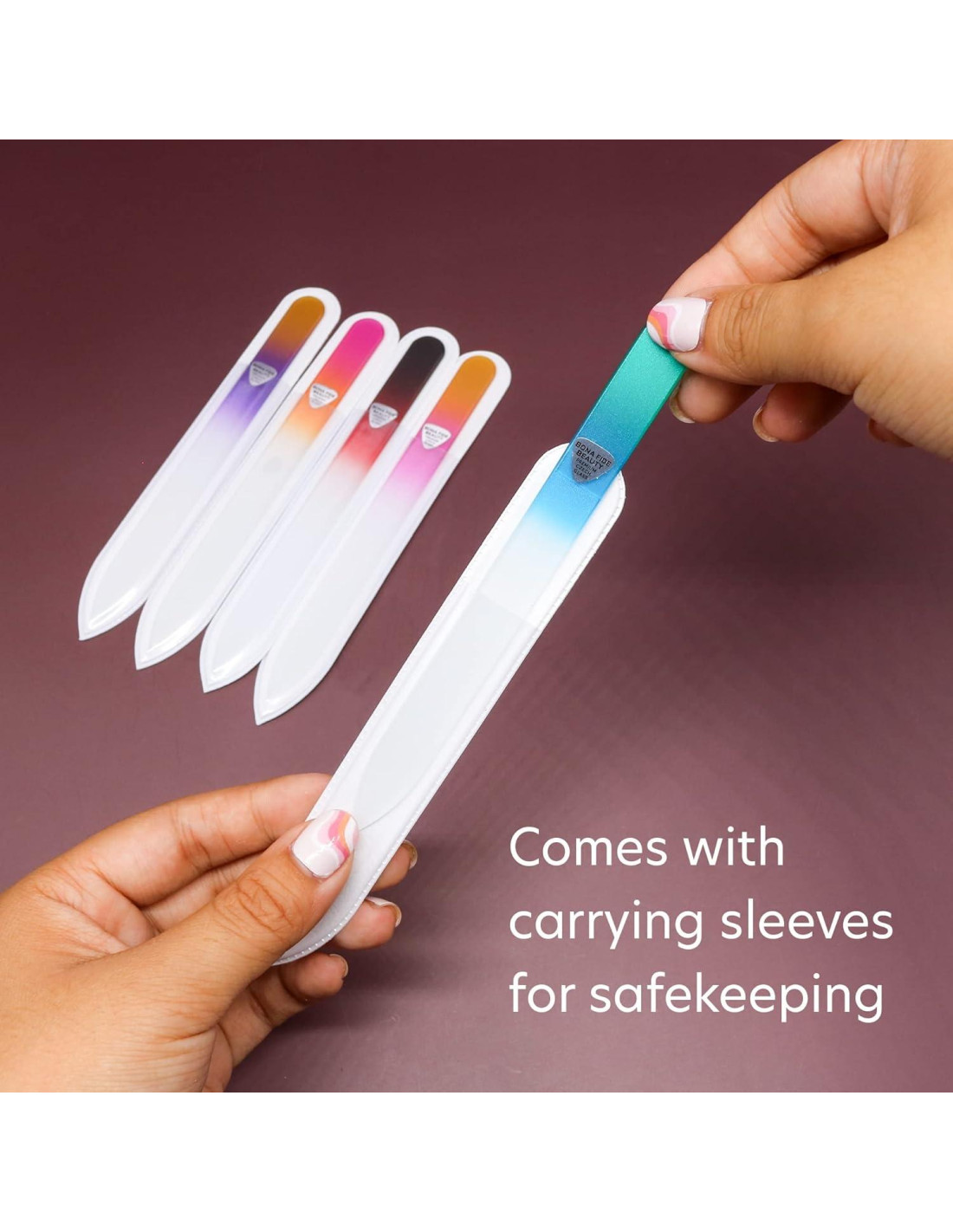 - Recorta, suaviza y da forma con limas de uñas de vidrio - a diferencia de otras limas de uñas, las limas de vidrio checo se pueden usar cómodamente en ambas direcciones. Recorta y da forma a las uñas naturales con comodidad y eficiencia. Comienza con una presión ligera al limar tus uñas por primera vez, y aumenta la presión a medida que te sientas cómodo. Con el limado regular de uñas, los bordes de las uñas se sellan y suavizan.