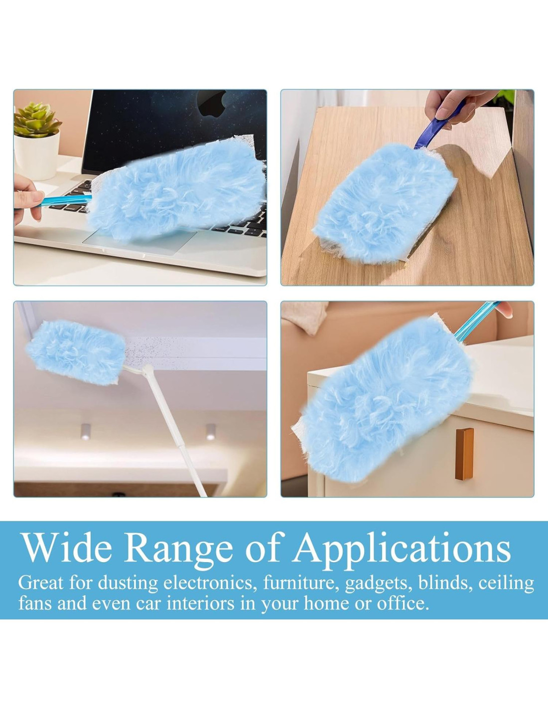 - Cobertura Completa de 360 - Las fibras electrostáticas atraen el polvo/cabello desde todos los ángulos con movimiento de giro, alcanzando espacios reducidos (persianas, ventilaciones, electrónica) sin dispersar partículas.