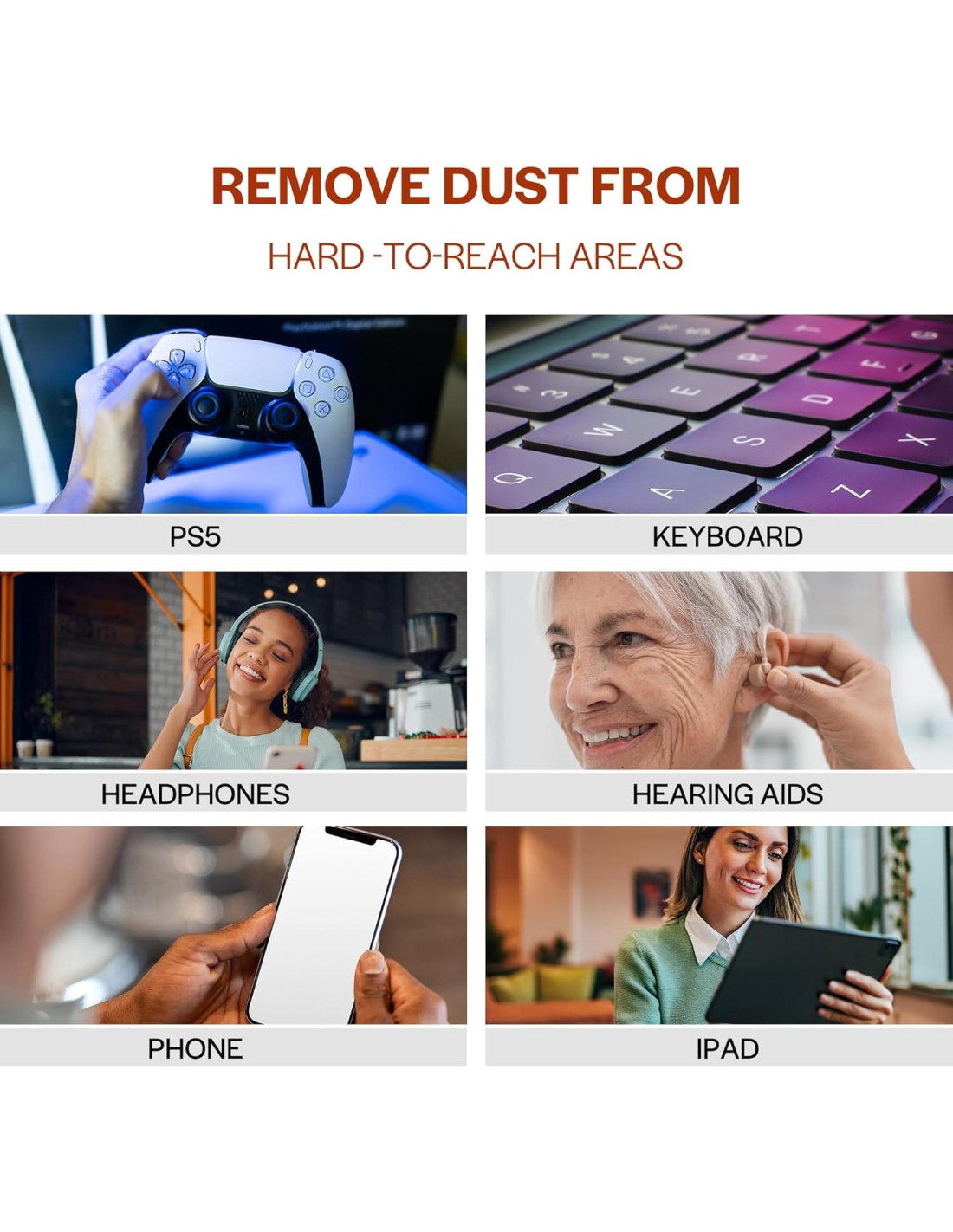 - Spray de Aire de Mano: Este limpiador en aerosol elimina poderosamente el polvo de áreas estrechas y de difícil acceso en dispositivos electrónicos. Ofrece una limpieza a fondo, siendo una alternativa precisa y conveniente a los limpiadores de aire eléctricos.