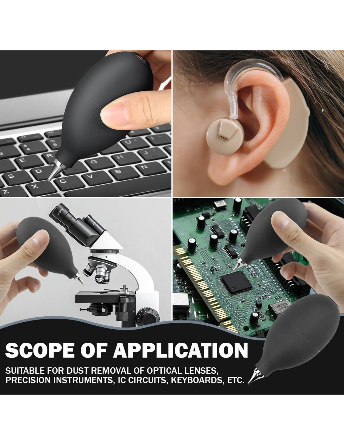 - Herramienta de Limpieza Multiusos: Este limpiador de bomba de aire es adecuado para una amplia gama de dispositivos electrónicos, incluyendo cámaras digitales, teléfonos inteligentes, relojes, lentes y otras partes delicadas que requieren una limpieza suave pero precisa.