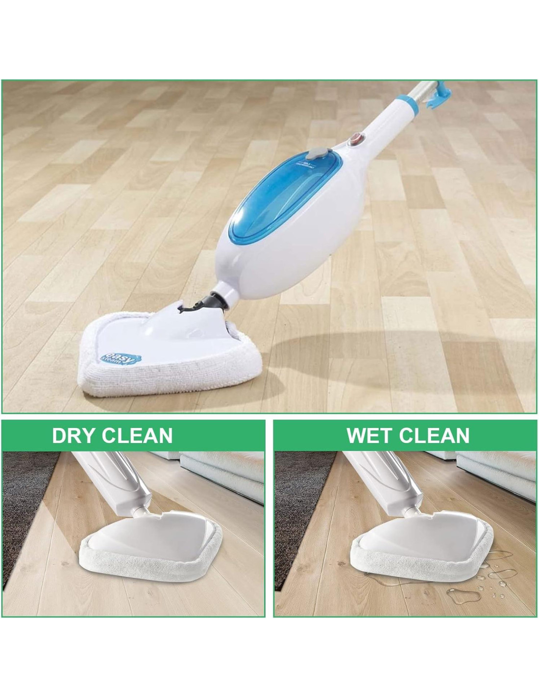 - Puedes usar estas almohadillas para mop de vapor para limpiar marcas sucias, manchas de agua, trozos de papel, cabello y polvo en todos los pisos duros sellados, incluyendo pisos de madera, baldosas de cerámica, pisos de mármol, pisos laminados, alfombra, y más.