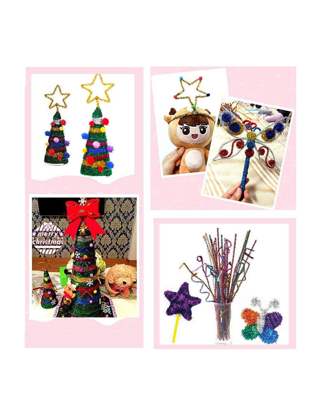 Especificaciones: Artículo: suministros de manualidades Material: polipropileno, plástico, alambre flexible y algodón Color: color mezclado Tamaño del tallo de chenille (Largo x Ancho): 30 cm / 30 cm de largo, 0.6 cm / 0.24 pulgadas Cantidad: 100 piezas El paquete incluye: 100 x limpiador de tubos metálico Nota: Piezas pequeñas. No apto para niños menores de 3 años.
