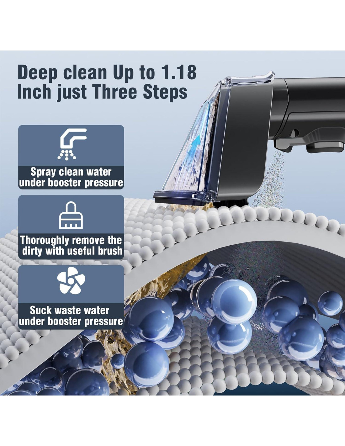 - HERRAMIENTAS PARA CADA DESORDEN. La máquina limpiadora de alfombras es para limpieza de telas que no se pueden limpiar en su totalidad, como sofá, colchón, asientos de coche y otros artículos difíciles de limpiar, conservando recursos hídricos y minimizando daños a los muebles alfombrados causados por limpiezas repetidas, extendiendo así su vida útil.