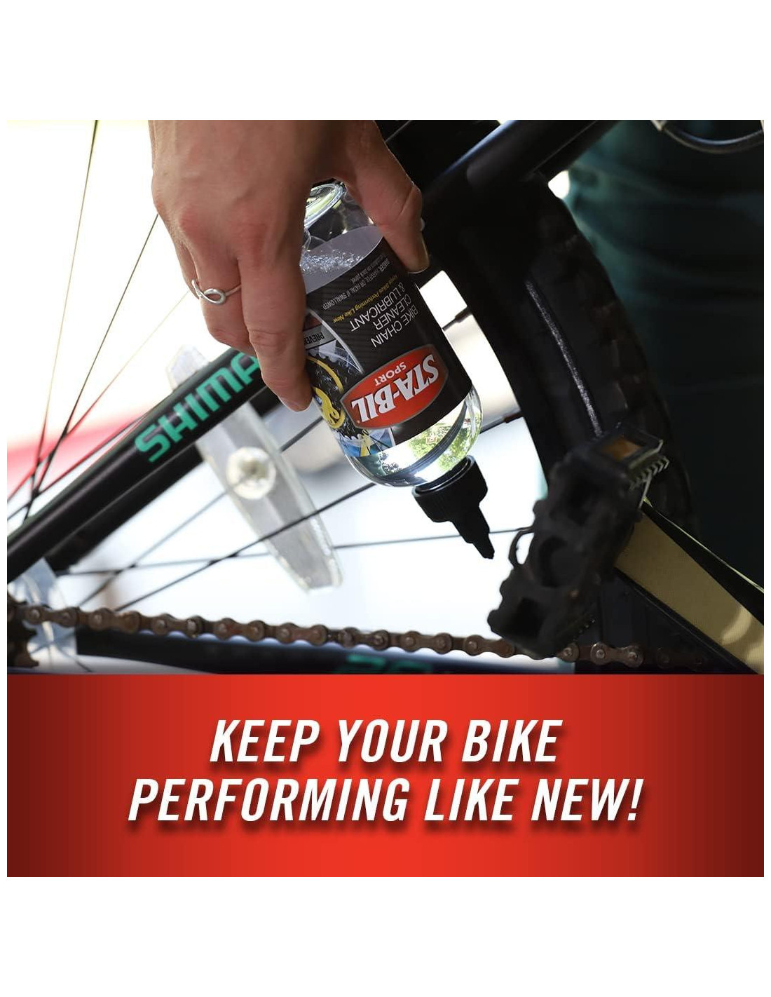 - PREVIENE ÓXIDO - El Limpia y Lubrica Cadenas de Bicicleta STA-BIL SPORT mantiene las bicicletas funcionando como nuevas al penetrar profundamente en la cadena, cables y desviadores de la bicicleta. Este producto fácil de aplicar funciona aflojando la suciedad y reduciendo la fricción para mejorar drásticamente el rendimiento del tren de transmisión de la manera más conveniente posible