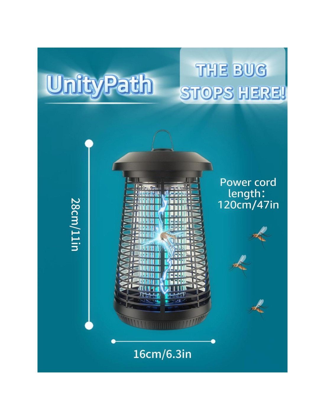 - Bombilla UV de 18W Reemplazable y Fácil Limpieza: Cuando la luz UV se debilita, simplemente reemplace la bombilla de 18W para mantener el poder efectivo de eliminación de insectos. Una bandeja removible en la parte inferior recoge insectos muertos y el cepillo incluido ayuda con una limpieza rápida y sin complicaciones.