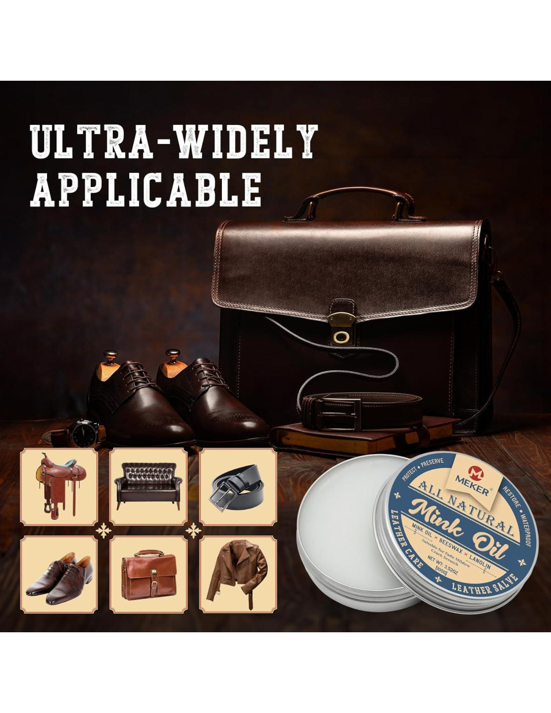 - Ultra-Ampliamente Aplicable: Disfruta de la versatilidad de MEKER Aceite de Visón ya que se puede usar en varios tipos de cuero, incluyendo curtido, de grano completo y suave. Perfecto para zapatos de cuero, botas, sofás, chaquetas, guantes, carteras, bolsos, asientos de coche, billeteras, cinturones, sillas de montar, arneses e incluso vinilo. Un regalo ideal para tus seres queridos que aprecian el cuidado de cuero de calidad.