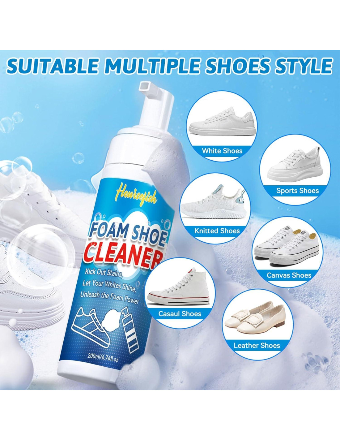 - Fórmula Poderosa: Nuestro kit de limpiador de zapatos en espuma y blanqueador de zapatos utiliza ingredientes de alta calidad confiables por expertos en cuidado de zapatos, garantizando un poder de limpieza excepcional. Este kit de limpiador de zapatillas aborda efectivamente la suciedad, manchas y grasa difíciles. Este kit de limpieza de zapatillas asegura que tus zapatos reciban un cuidado superior, dejándolos luciendo frescos y revitalizados después de cada uso.