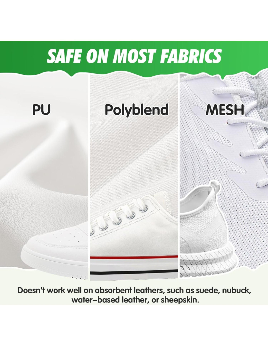 - LIMPIEZA VERSÁTIL PARA MATERIALES DE ZAPATOS MÚLTIPLES - Este kit de limpieza de zapatos es adecuado para varios materiales, incluyendo cuero PU, cuero sintético, malla y goma. Nota: No recomendado para lona, gamuza, nubuck o piel de oveja.