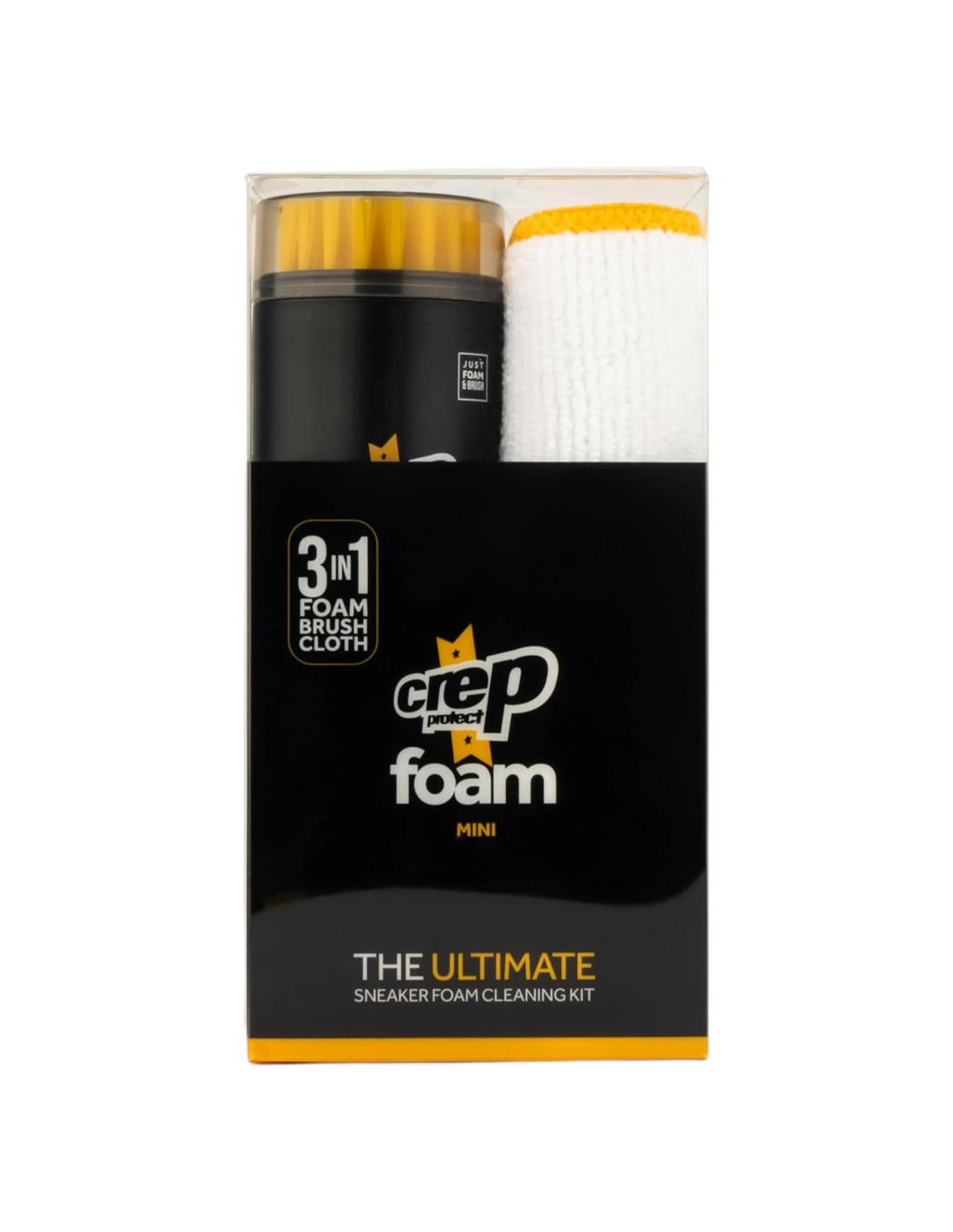 - Kit de Limpiador de Zapatos en Espuma Premium - Todo lo que Necesitas - Crep Protect Foam Mini es tu kit completo de limpiador de zapatos en espuma, que incluye una espuma limpiadora de 50ml con cabezal de cepillo incorporado y un suave paño de microfibra. Diseñado para una limpieza rápida y efectiva en cualquier momento y lugar.