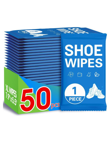 - ESENCIAL COMPACTO Y DE VIAJE: Nuestras toallitas limpiadoras para zapatos están empaquetadas individualmente (paquete de 50) para fácil transporte y pueden retener la humedad, cabiendo en bolsillos, bolsas de gimnasio o consolas de automóviles. Aborda las manchas de zapatos en cualquier lugar para días lluviosos, senderismo o derrames inesperados