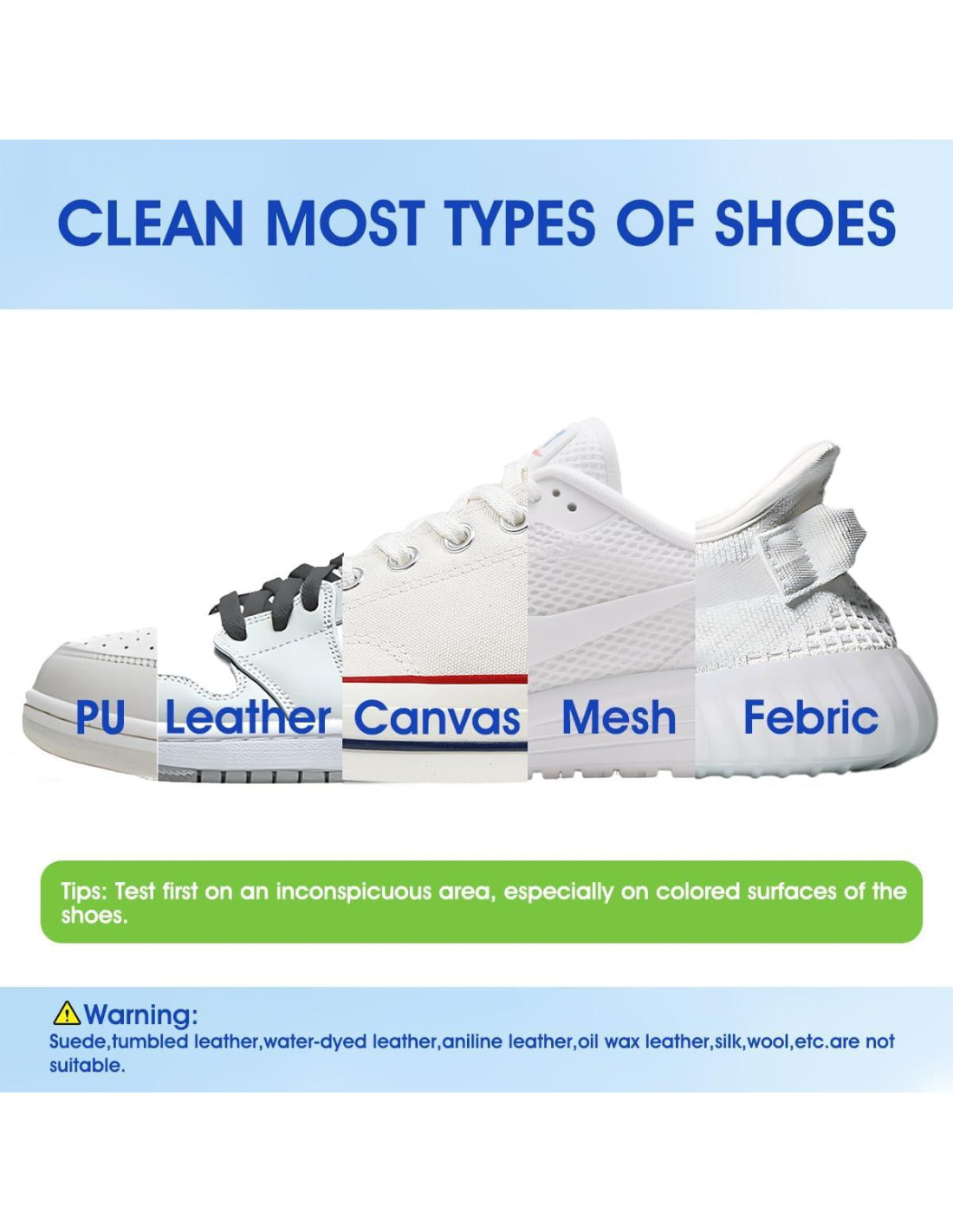 - LIMPIADOR DE ZAPATILLAS VERSÁTIL: Ya sea lona, cuero, goma o malla, nuestras toallitas para zapatos pueden satisfacer tus necesidades. Las toallitas limpiadoras también se pueden usar en productos como bolsos, asientos de automóviles y cinturones de seguridad. Consejos: Evitar gamuza, seda, lana y superficies delicadas