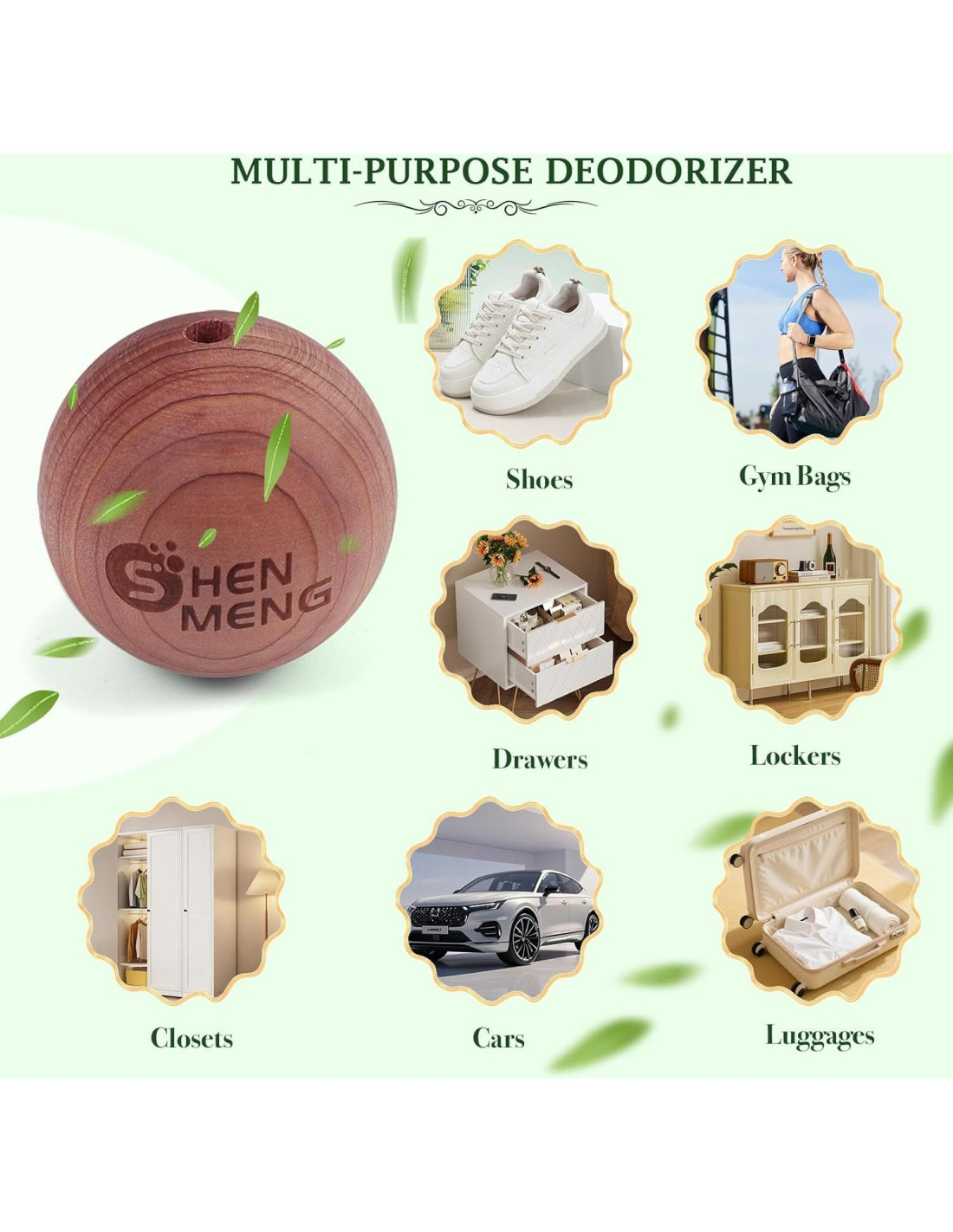 - Frescura Versátil para el Hogar y en Movimiento: ¡Más allá de los zapatos! Estas versátiles bolas eliminadoras de olores de cedro son perfectas para mantener armarios, cajones, bolsas de gimnasio, equipaje y autos con un aroma fresco y limpio. El aroma natural de cedro también ayuda a repeler suavemente polillas y otras plagas. Es el regalo perfecto y considerado para cualquier amante de las zapatillas o para cualquier persona que valore un ambiente natural y fresco