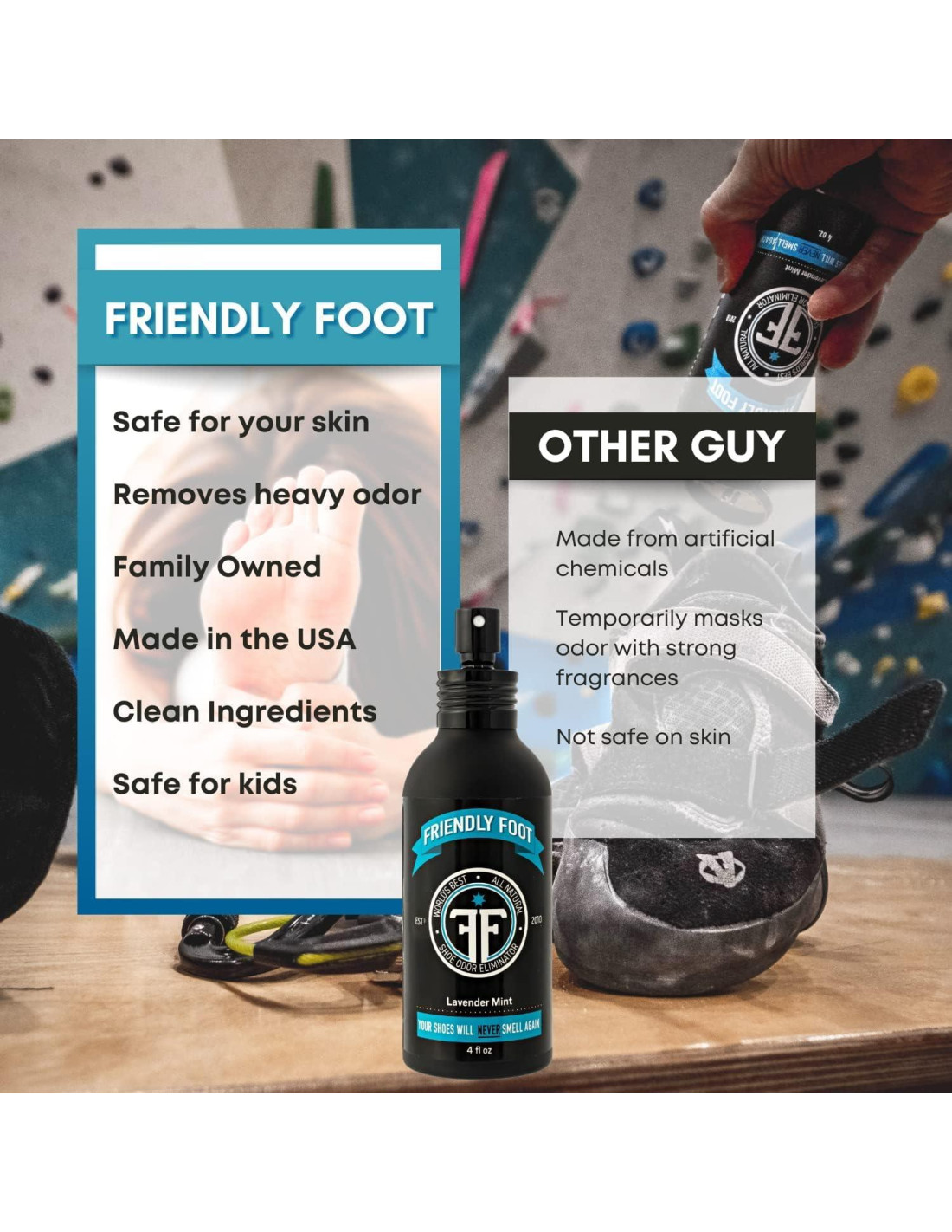 - COMODIDAD PARA LOS PIES TODO EL DÍA: Experimenta frescura duradera con el Desodorante para Zapatos Friendly Foot. Nuestra mezcla única de lavanda y menta naturalmente potentes ofrece una solución refrescante que mantiene tus pies oliendo bien durante todo el día. Disfruta de la confianza de tener pies sin olores, ya sea que estés en el trabajo, en el gimnasio, bailando o de pie todo el día.