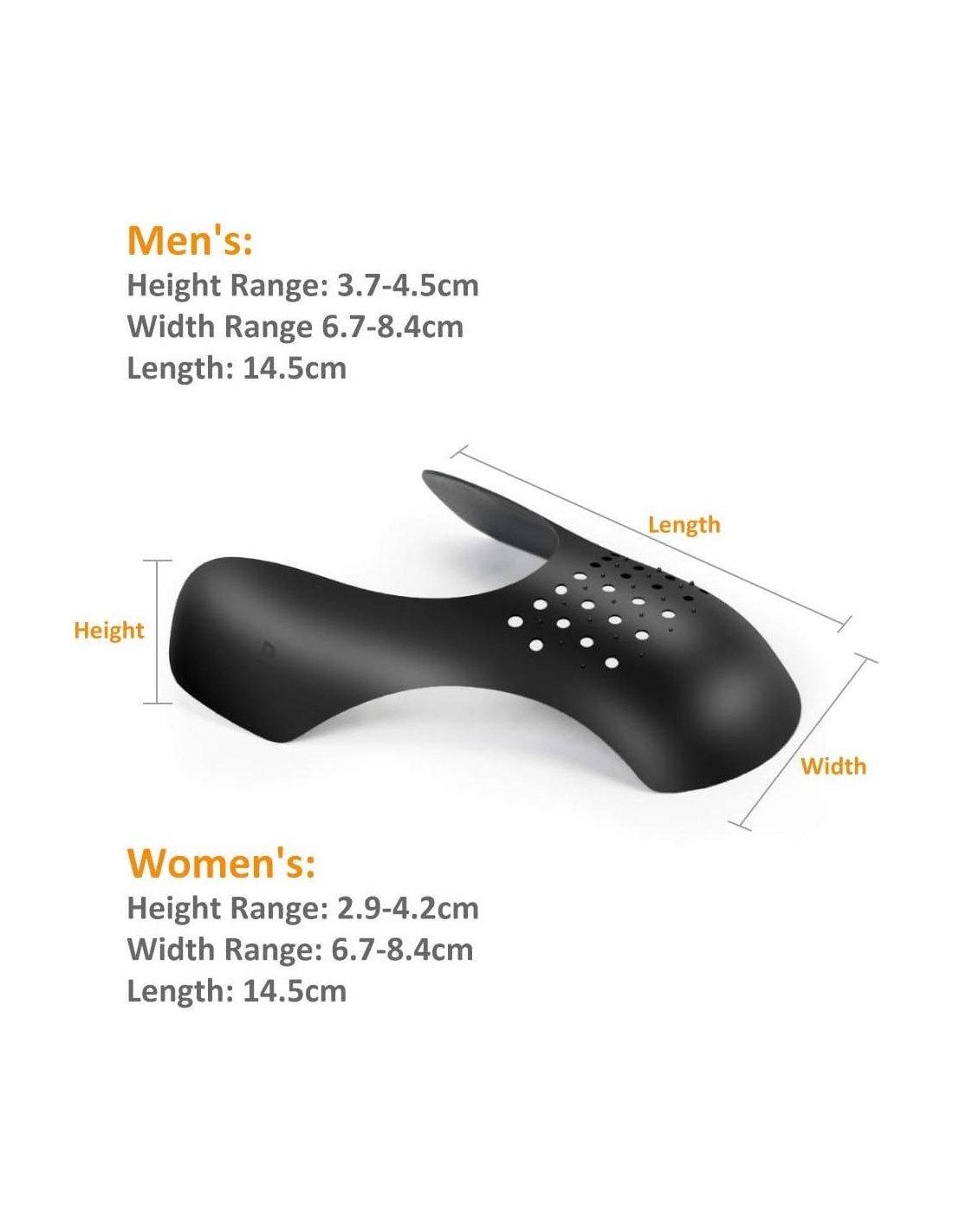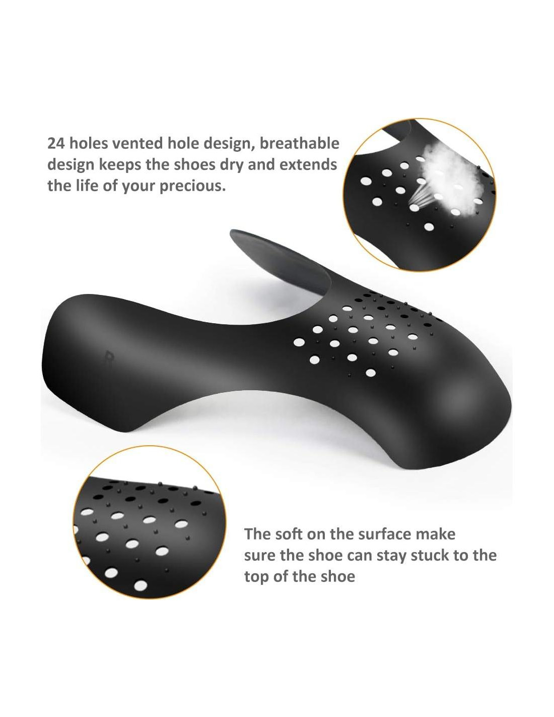 *Diseño Transpirable 23 agujeros transpirables para mantener tus pies secos y cómodos, lo que te hace sentir natural. *Cortable Puedes cortar fácilmente el protector de pliegues de zapatos al tamaño que necesites con las líneas de corte auxiliares. *Tienen dureza y flexibilidad Hecho de material PE y TPR que puede hacer que el protector de pliegues de zapatos sea resistente a bajas temperaturas, resiliente y lavable.