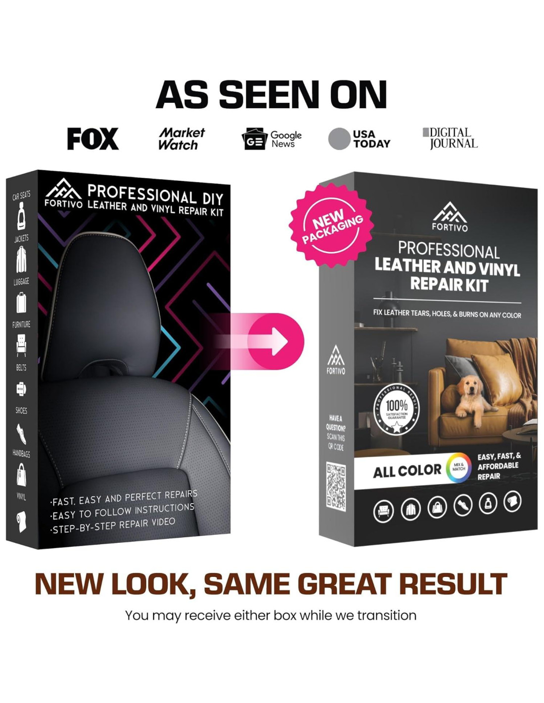 - Kit de Reparación de Cuero y Vinilo Fortivo, Devuelve la vida a tus muebles y asientos de coche desgastados con nuestro kit de reparación de sofá de cuero. Con un proceso de aplicación simple del kit de reparación de cuero para coches, puedes abordar cualquier trabajo de reparación en poco tiempo.