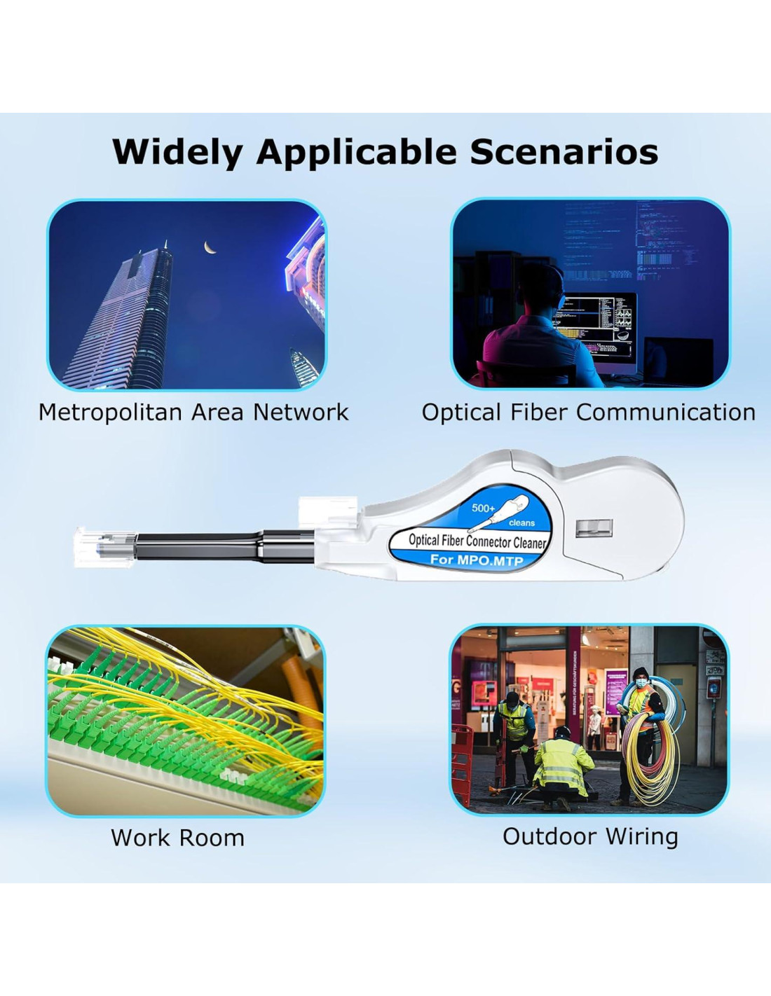 - Fácil de Operar: Limpieza con un clic, limpia suavemente y de manera eficiente la cara de extremo del conector de fibra óptica; Fácil de usar, no necesita alcohol adicional; Microfibras diseñadas especialmente pueden eliminar la suciedad sin dañar los núcleos de fibra frágiles.