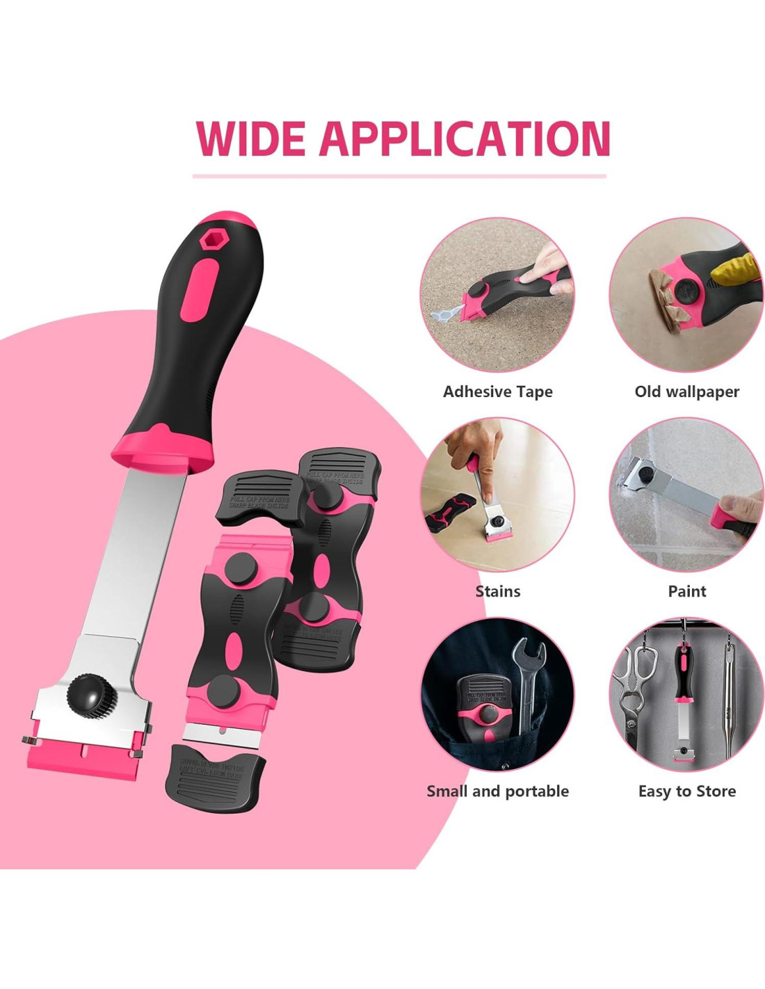 - [Amplia Aplicación] La cuchilla de metal pesada es adecuada para superficies duras, la cuchilla de plástico es adecuada para superficies suaves. Limpiador multiusos, herramienta raspadora de etiquetas para limpiar azulejos de cerámica, automóviles, hornos, pegamento, pintura y más