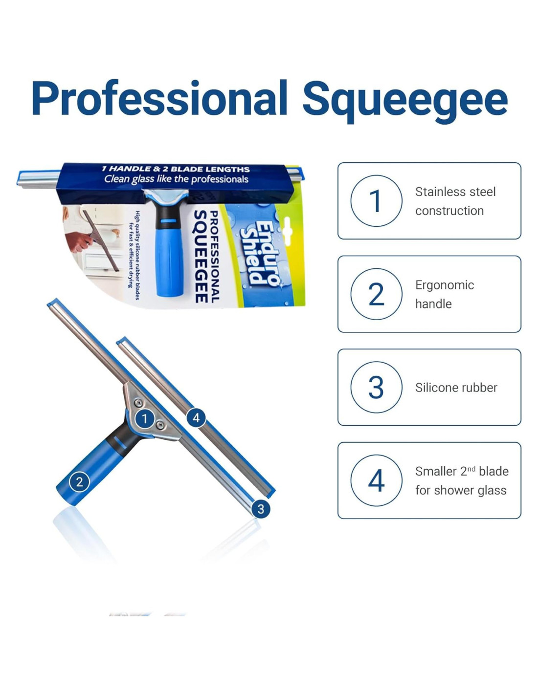 - Limpieza Sin Rayas: La hoja de goma de silicona de precisión garantiza resultados sin rayas en ventanas, puertas de ducha, barandillas y más.