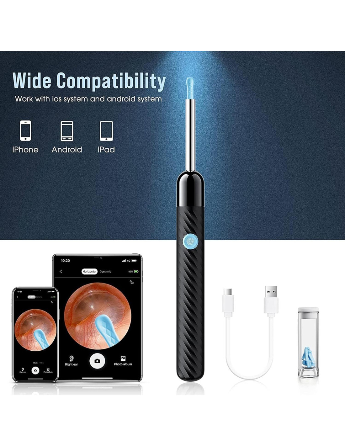 - Cámara para Oídos 1080P HD: El kit de eliminación de cerumen está equipado con 6 luces LED y una cámara 1080P HD para ayudarte a ver y limpiar el cerumen de manera efectiva. Al usarlo, la temperatura de la cámara de eliminación de cerumen es cercana a la temperatura del cuerpo humano. Adecuado para adultos, revisar dientes, nariz, garganta, raíz del cuero cabelludo y otras partes del cuerpo. Artículos elegibles para HSA FSA solo