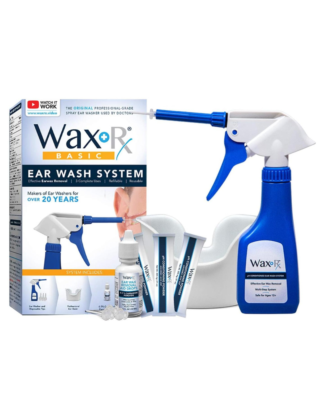 - Cada pedido contiene el Sistema de lavado de oídos Wax-Rx pH acondicionado con tres puntas desechables, recipiente, 0.5 oz de gotas para la eliminación de cerumen y 3 paquetes de enjuague en polvo Wax-Rx pH.