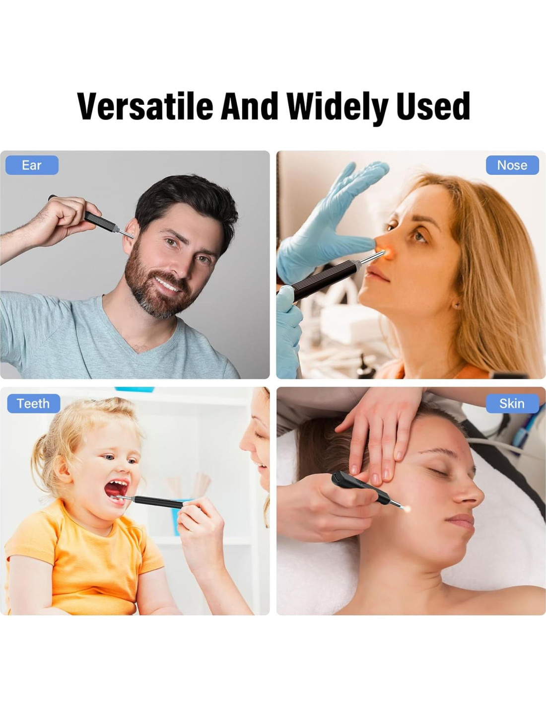 - [Campo de Visión Omnidireccional de 360 y Cámara de Oído de 1080P HD] Esta herramienta de limpieza de cerumen tiene una lente de alta precisión incorporada con 5 millones de píxeles, su diseño de gran angular cubre 360, y está equipada con 6 luces LED y soporta resolución de 1080P HD, asegurando que puedas ver claramente cada rincón del canal auditivo y lograr una experiencia de limpieza de oídos más precisa e higiénica.