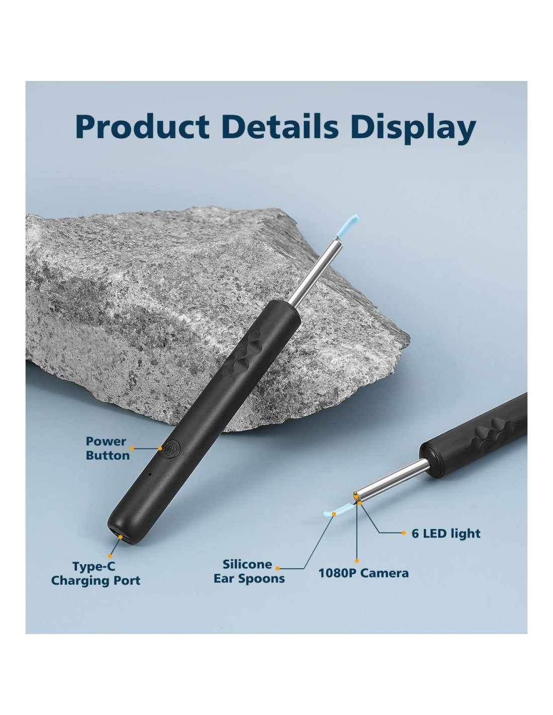 - [Varios Accesorios para Limpiar Oídos]: El kit de limpieza de oídos tiene 3 tipos de cucharas para cerumen con diferentes radios para adaptarse a los anchos del canal auditivo de diferentes personas. La cubierta de la cuchara para cerumen está hecha de silicona suave avanzada, lo que puede brindarte una experiencia cómoda al limpiar los oídos. También tiene el último diseño de hebilla, que resuelve el problema de la fácil caída. También proporciona 7 herramientas tradicionales para recoger cerumen para tu elección.