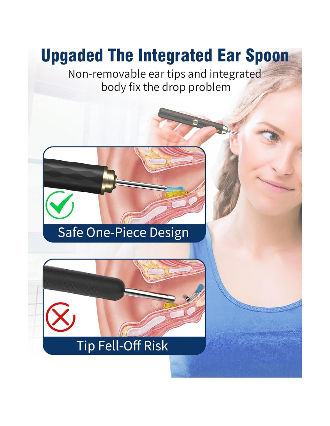 - Claridad Asombrosa en Su Canal Auditivo: nuestro kit de remoción de cerumen tiene una lente macro de 300W y una lente gran angular de 360 grados que le muestran imágenes de 1296P de su canal auditivo. 6 luces LED IP67 a prueba de agua mantienen sus oídos térmicos y brillantes. Puede eliminar fácilmente y de forma segura el cerumen sin complicaciones ni dolor. El dispositivo tiene un giroscopio de 3 ejes que mantiene la imagen estable y clara incluso cuando se mueve. Es la solución definitiva para la limpieza de oídos para toda la familia mayores de 3 años.