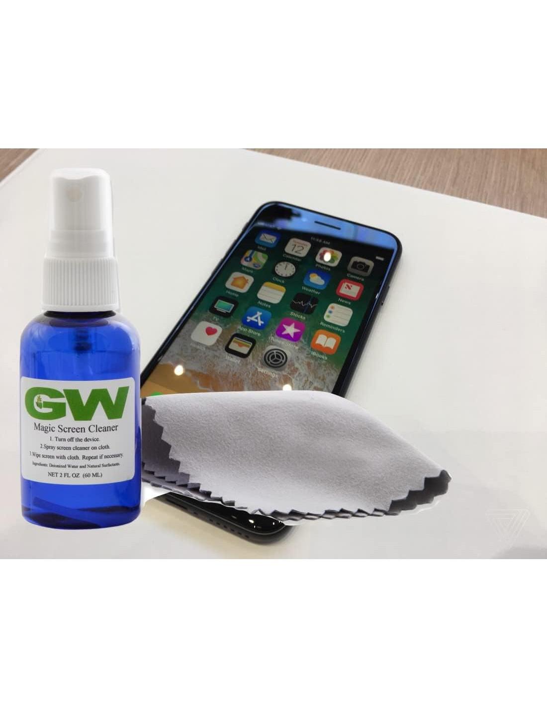 - El Kit de Limpiador de Pantallas Mágico GW Incluye - (1) Spray Limpiador de Pantallas Mágico (2 oz) (59.15 ml), (1) Paño de Microfibra (15.24 cm x 15.24 cm), (1) Paño de Microfibra Lavable Multiusos de Bonificación (30.48 cm x 30.48 cm).