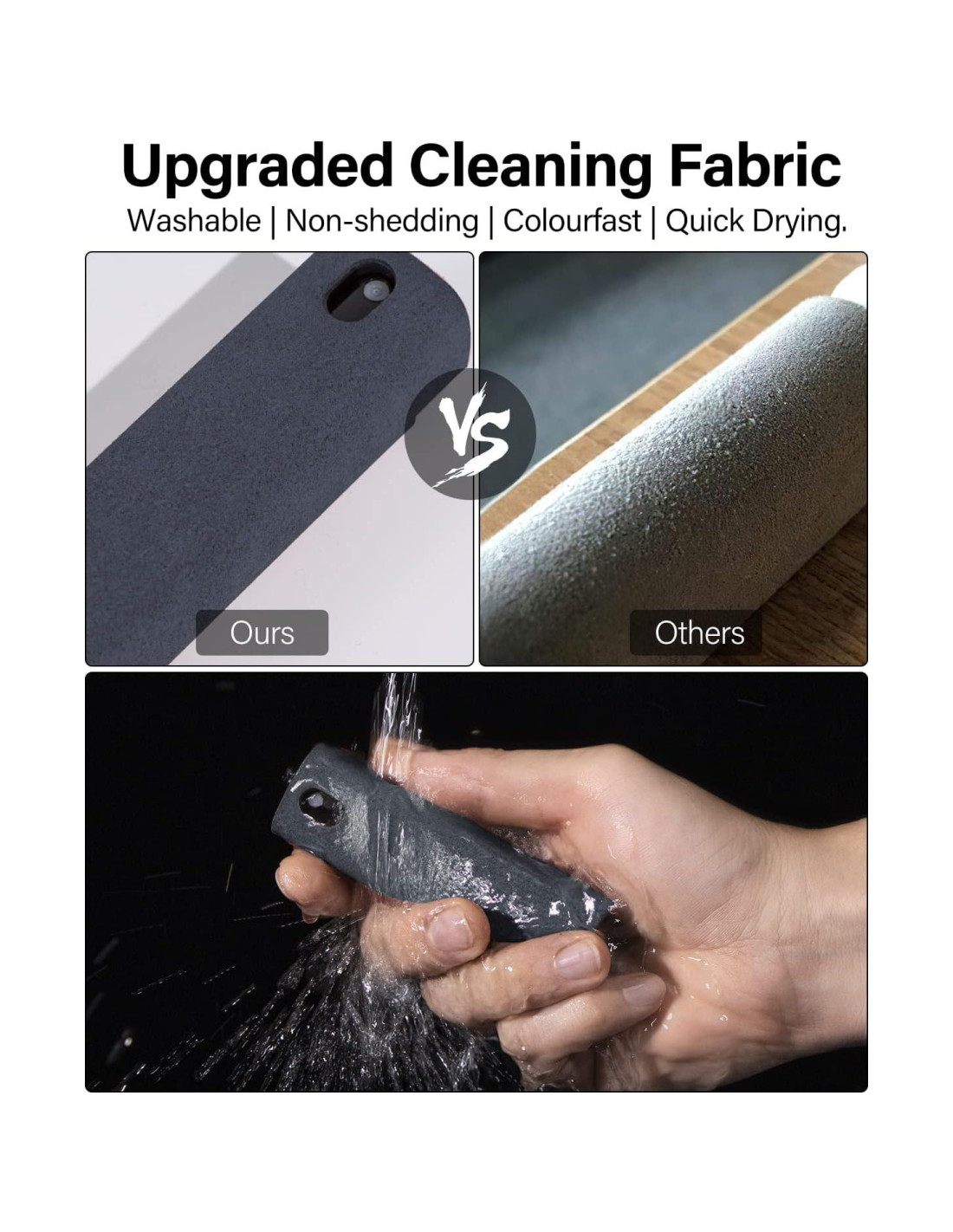 - Líquido no incluido: herramienta de limpieza desmontable 3 en 1 que consiste en una funda protectora, una funda de paño de microfibra y una botella de spray (líquido de limpieza NO INCLUIDO), además de una tira de silicona única para eliminar manchas difíciles con facilidad. Nota: No poner líquidos corrosivos.