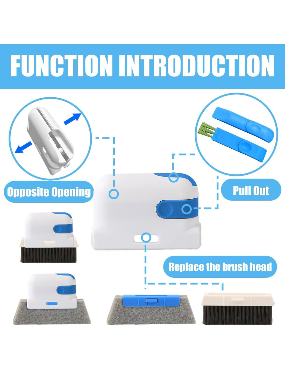 - Kit de cepillos para limpiar pantallas de ventanas: 1 limpiador de pantallas de ventanas, 1 cabezal de cepillo de repuesto para limpiador de pantallas de ventanas. 1 cepillo para limpiar rieles de ventanas, 2 cabezales de cepillo de cerdas rígidas de repuesto, 2 cabezales de cepillo de almohadilla abrasiva de repuesto.