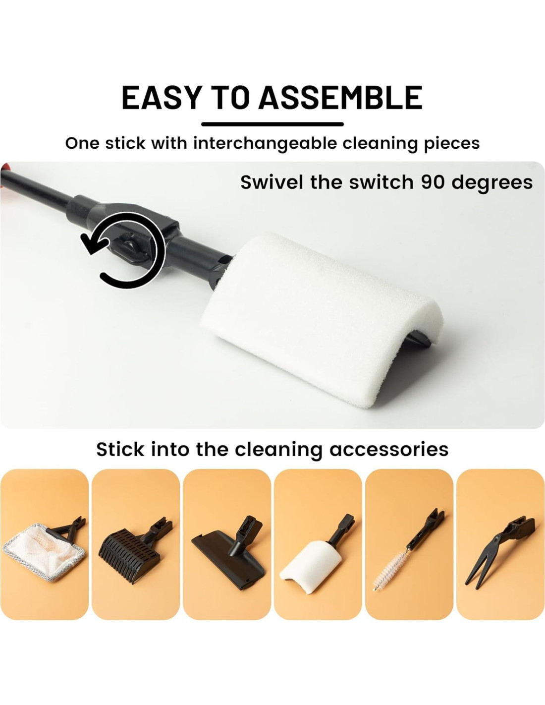- Fácil de ensamblar: Un palo con piezas de limpieza intercambiables, gira el interruptor 90 grados, inserta en los accesorios de limpieza.