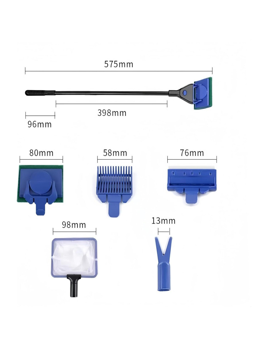 - Perfecto para principiantes en acuarios, incluye todas las herramientas de limpieza que necesitas para la limpieza diaria, este juego de limpieza 5 en 1 hará que el mantenimiento de tu acuario sea fácil; Solo coloca diferentes cabezales en el mango, puedes hacer la mayor parte del trabajo de mantenimiento con él.