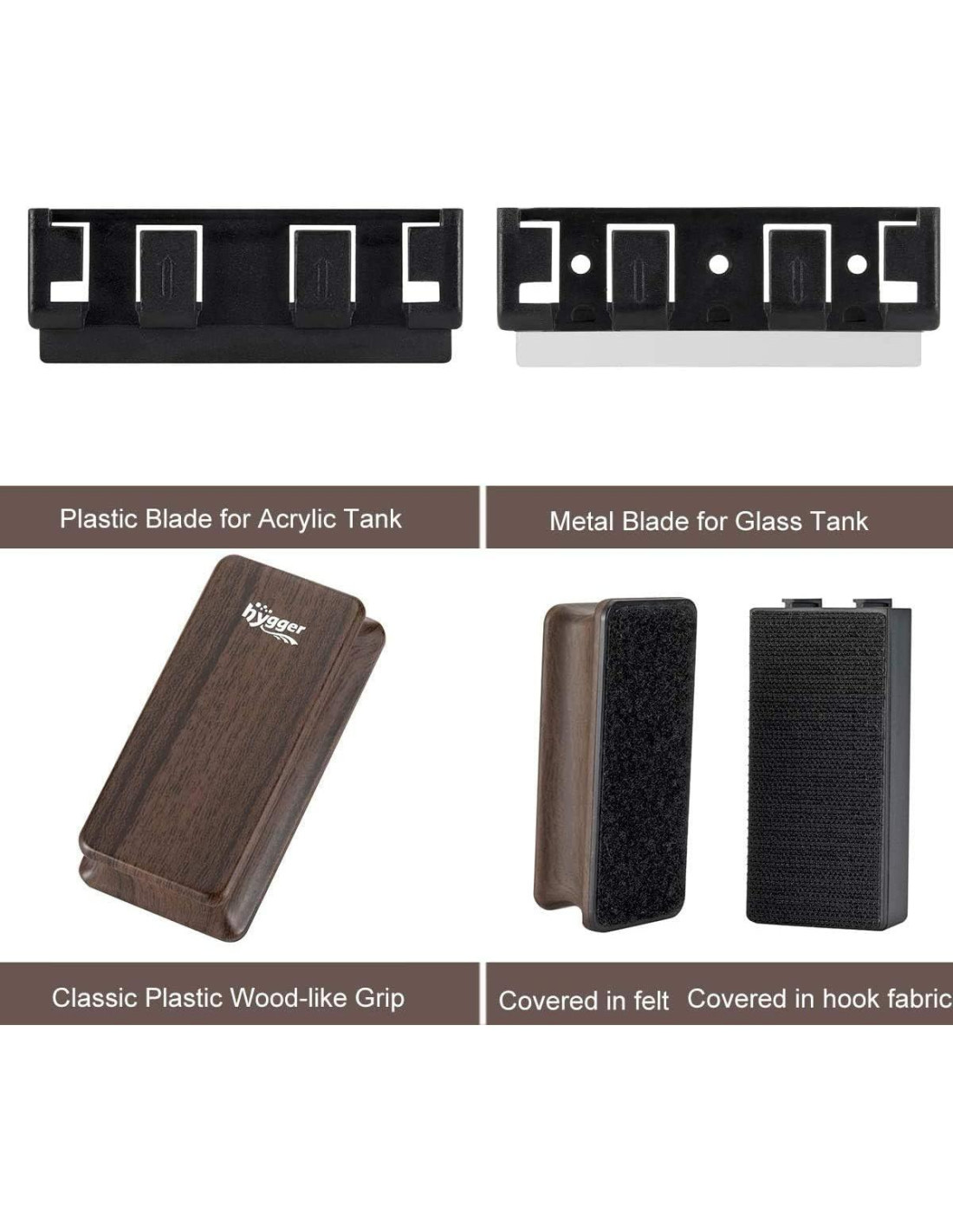 - Imán Poderoso - El Limpiador Magnético para Acuarios hygger tiene un magnetismo tan fuerte que se adhiere firmemente al cristal y no se cae. Este agarre suave y curvado con acabado similar a la madera está diseñado ergonómicamente para que sea cómodo de usar y te permite profundizar y alcanzar los lugares difíciles. La almohadilla de fregado está cubierta con tela de gancho similar al velcro junto con la cuchilla para raspar las cosas difíciles que crecen en el cristal