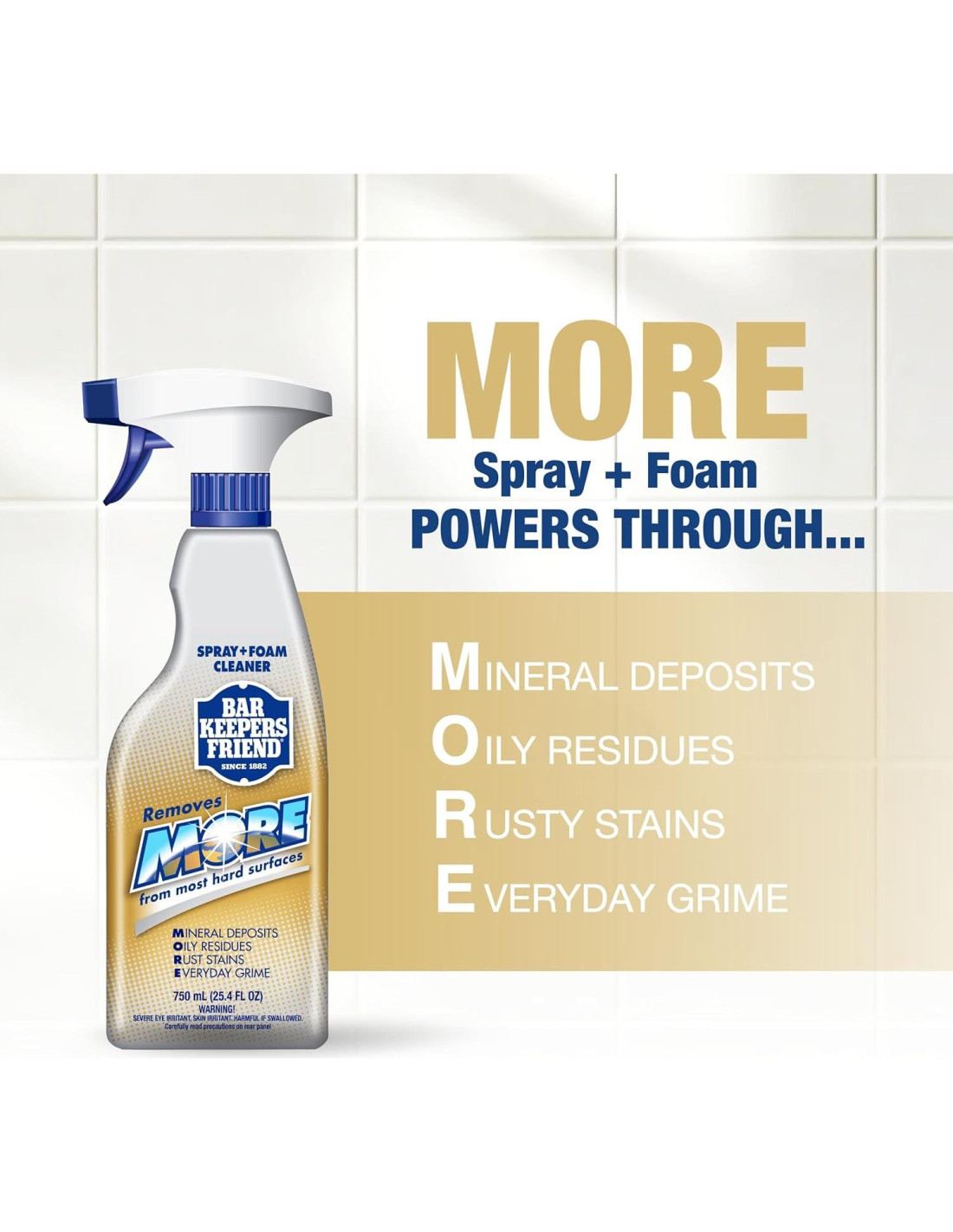 - Paquete de Limpiador Multiusos: Bar Keepers Friend Limpiador Suave y MÁS Spray + Espuma son productos de limpieza multiusos que eliminan residuos grasos, manchas de óxido, depósitos minerales y suciedad. Productos de limpieza imprescindibles para el hogar