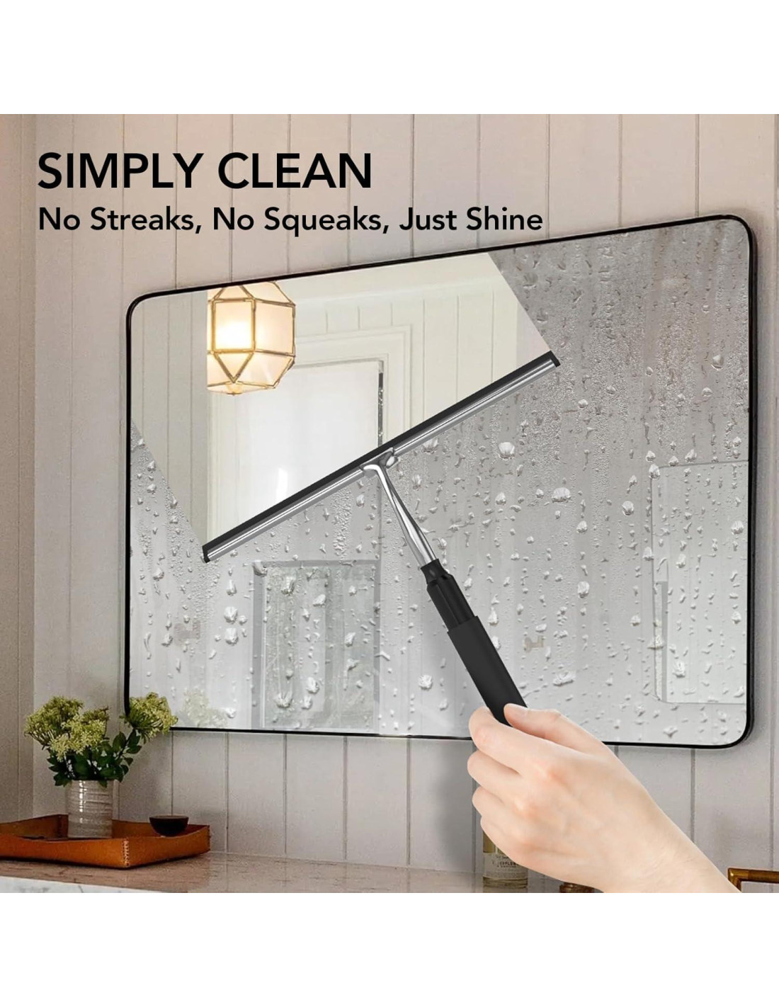 - Limpiador Extensible / Telescópico: Este limpiador de mango largo cuenta con un mango ajustable de 15-51" (38-130 cm) que se extiende fácilmente para alcanzar esquinas altas y espacios reducidos. Perfecto para limpiar paredes de ducha, puertas de vidrio y ventanas sin forzar la espalda o agacharse.