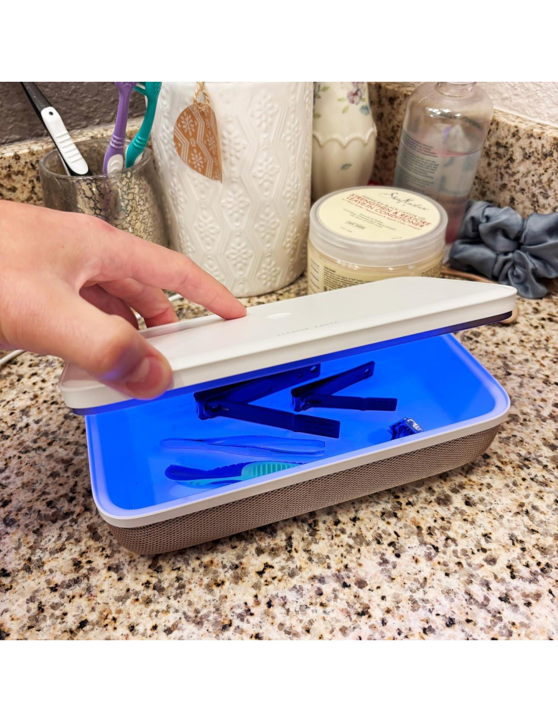 - | Ciclo de Desinfección Rápido de 5 Minutos | Elige entre una limpieza rápida de 5 minutos o un ciclo más profundo de 10 minutos. Lo suficientemente potente para teléfonos, herramientas de belleza y maquillaje, artículos de cuidado de uñas, esenciales para bebés y más.